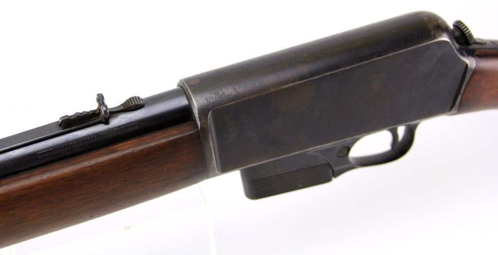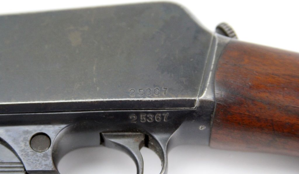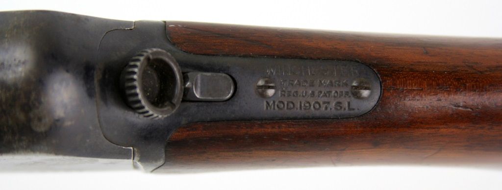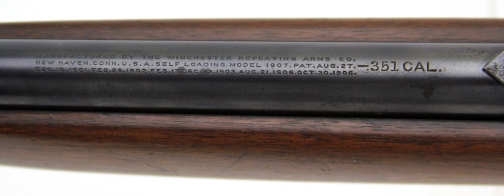 WINCHESTER MODEL 1907 CARBINE Winchester Model 1907 Auto in .351 caliber. Serial number indicates manufacture in 1911.Type: rifle Manufacturer: Winchester Model: 1907 Caliber / Gauge: .351 Serial Number: 25367. Condition: Bore is very good, bluing about 70%, with some losses to receiver. Stock is good and free of cracks.