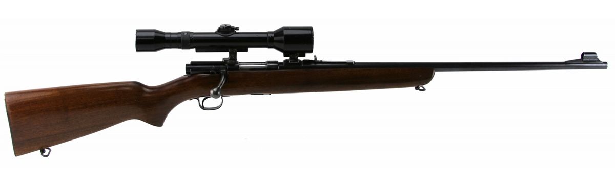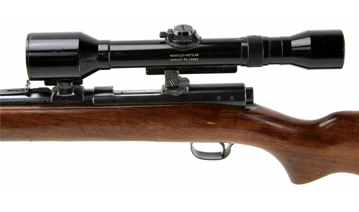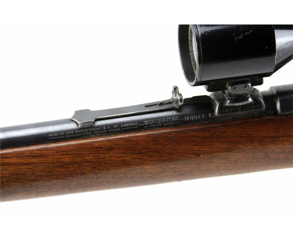 WINCHESTER MODEL 43 BOLT ACTION RIFLE .22 HORNET Winchester Model 43 bolt action rifle, manufactured between 1949 & 1957. German made Hensoldt-Wetzlar Duralyt 6x scope. Type: rifle-bolt Manufacturer: Winchester Model: 43 Caliber / Gauge: .22 Hornet Serial Number: 16946A Condition: Very good bore, bluing about 90%, and stock very good, with minor handling marks. Overall very good.