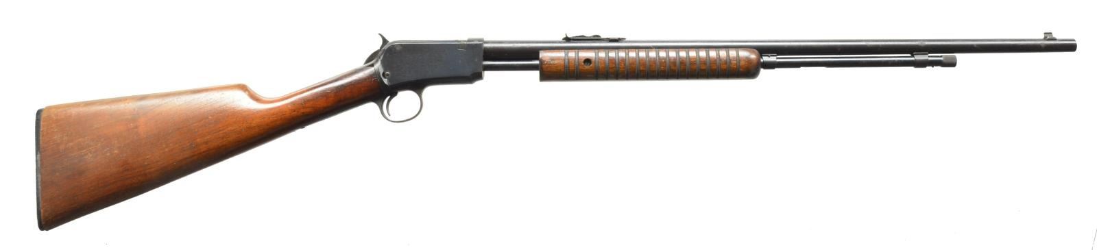 Cal. 22 S, L or LR. S# 309215. Bbl. 23" rnd. w/ standard open sights. Mfg. 1954 (1932-1958) w/ plain straight grip buttstock & rnd. grooved flat bottomed forend. CONDITION: good general appearance w/ scattered light oxidation throughout. Good stock set w/ light marks on butt & chip at left rear of forend. Near excellent bore. (20-4249/NW). CURIO. $300-450.