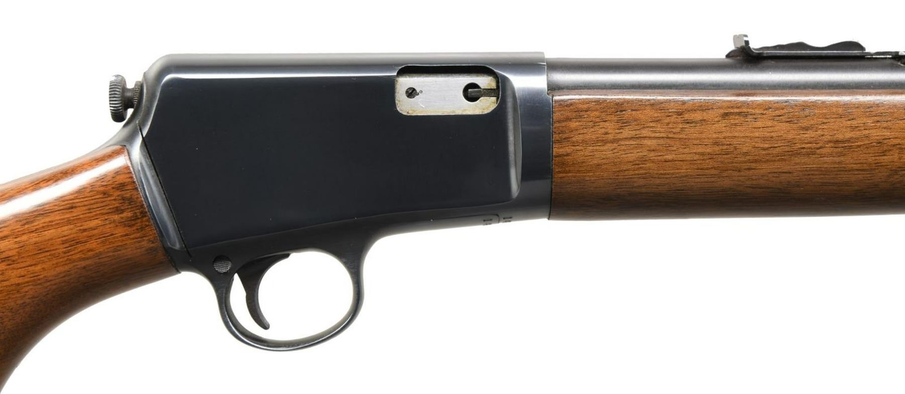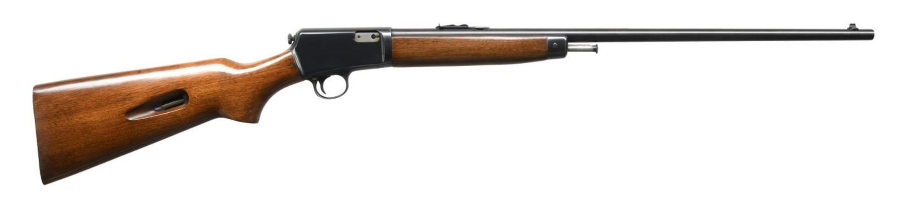 Cal. 22 LR. S# 149234A. Bbl. 23" with factory sights; dovetailed silver bead front and elevator adjustable rear. Mfg. 1956 (1933-1958; approx. 175,000 units) without grooved receiver. Takedown with appearance similar to previous Model 1903 but designed for modern LR cartridge. CONDITION: occasional very faint handling marks and wear on action rod. Overall very good plus to near excellent including bore. PROVENANCE: The Collection of Gun Sport Ltd owned by Jon R. Thomas.(23-3562/NW). CURIO. $750-1,000.