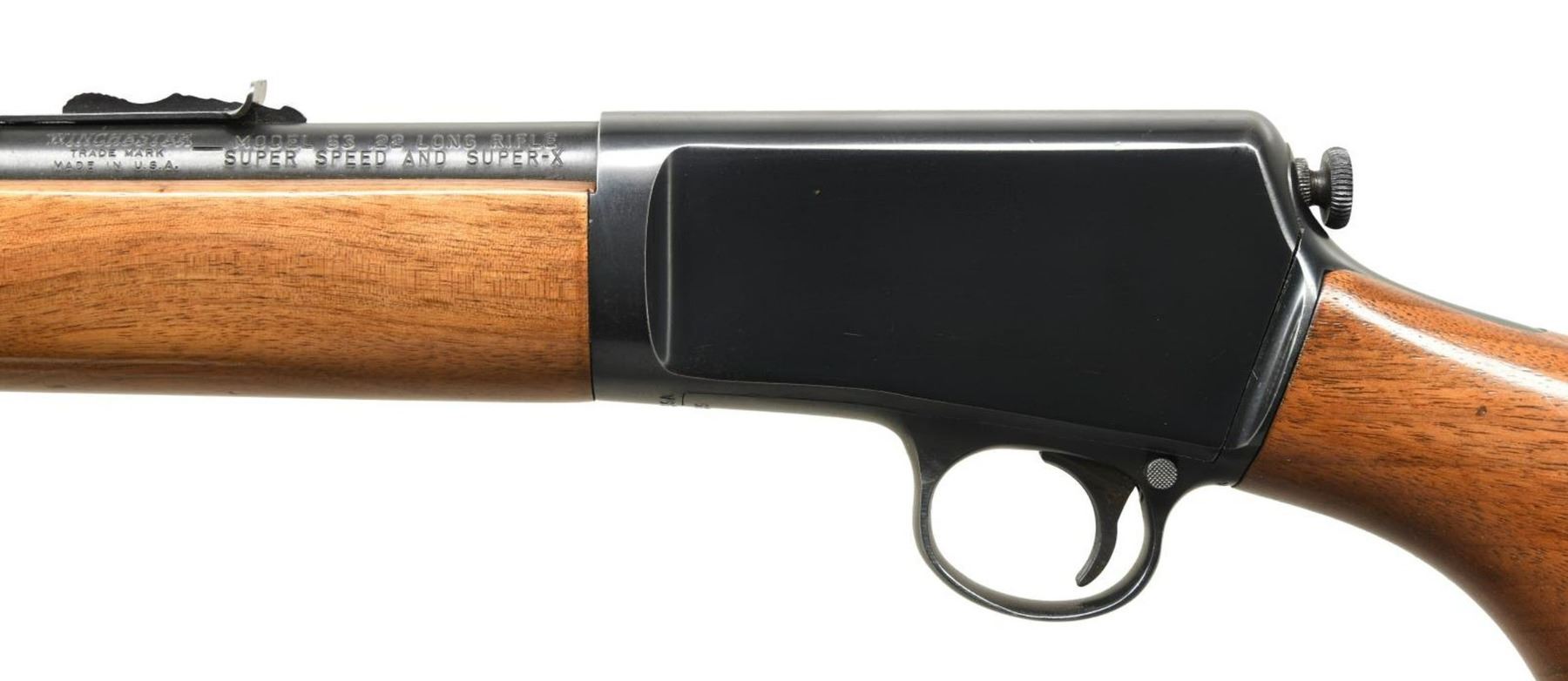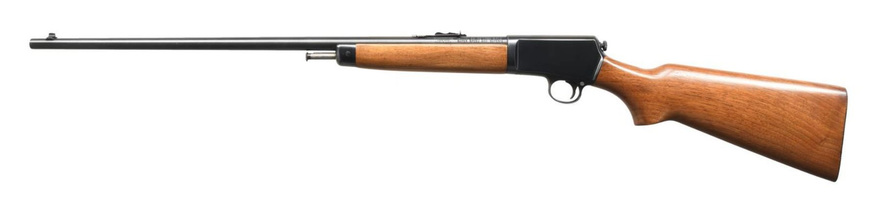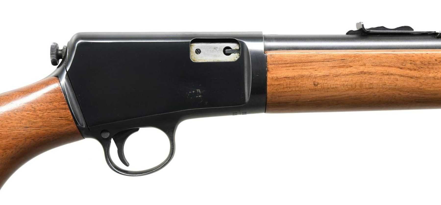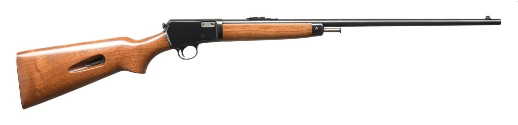 Cal. 22 LR. S# 152039A. Bbl. 23" with factory sights; dovetailed silver bead front and elevator adjustable rear. Mfg. 1957 (1933-1958; approx. 175,000 units) without grooved receiver. Takedown with appearance similar to previous Model 1903 but designed for modern LR cartridge. CONDITION: occasional very faint handling marks and wear on action rod. Overall very good plus to near excellent including bore. PROVENANCE: The Collection of Gun Sport Ltd owned by Jon R. Thomas. (23-3563/NW). CURIO. $750-1,000.