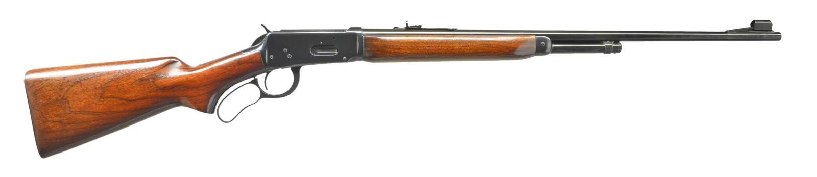 Cal. 32 Win. Spec. S#. 1919474. Bbl. 24" tapered round. Hooded ramp bead front with sporting rear sight. 2/3 length mag. Blue finish. Semi beavertail forend and pistol grip walnut stock with checkered steel buttplate. Polishing room records indicate 1952 mfg. CONDITION: Near new. Exceptional rifle retaining over 99% finish. Wood shows a few handling marks. Bright near excellent bore. (22-5239/DS). CURIO. $1250-1750.