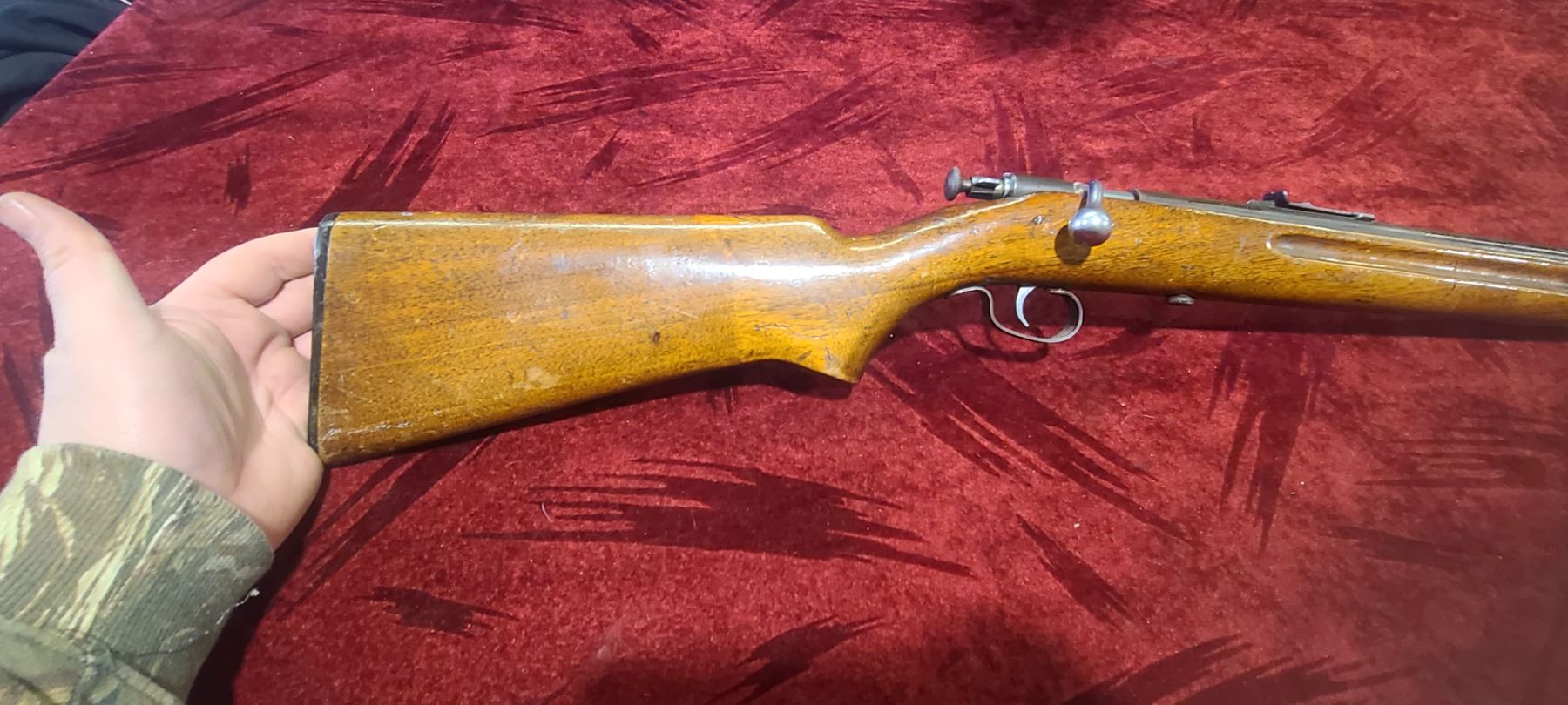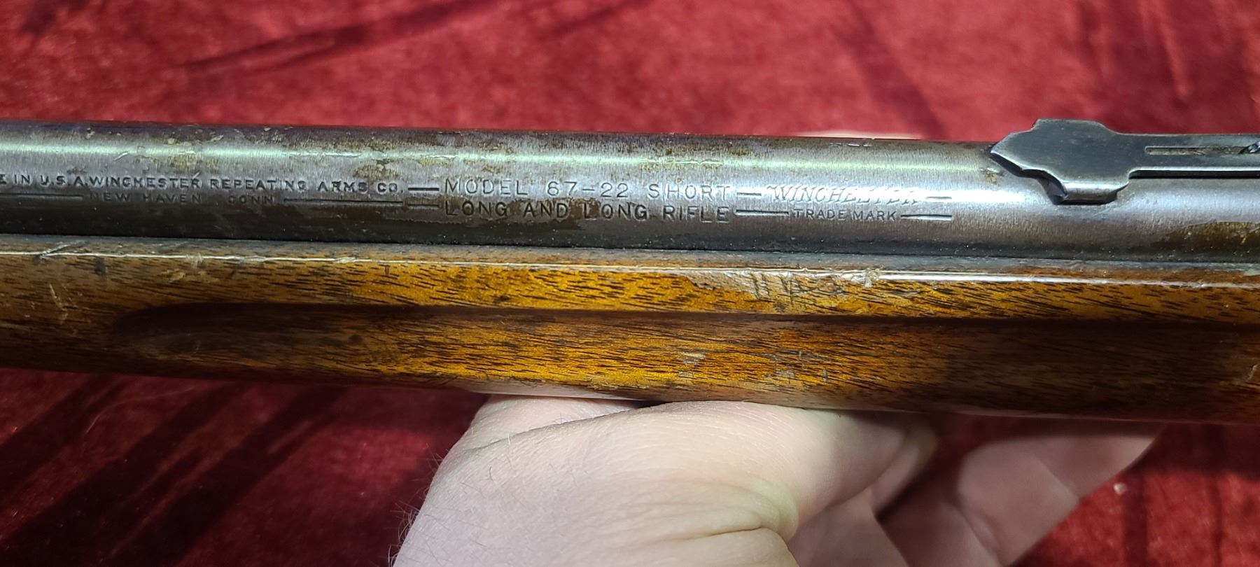 WINCHESTER MODEL 67 22 SHORT RIFLE, SN 15555, 27 INCH BARREL, ORIGINAL PARTS AND BUTT PLATE