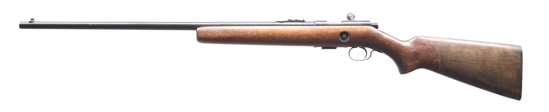 Cal. 22 S,L,LR. NSN. Bbl. 25" w/ original sporting sights. Walnut pistol grip stock. MAGS: 1 aftermarket 5 rd. CONDITION: 80% lightly worn blue showing spots of freckling. Stock shows wear w/ missing finish on butt section having scratches & marks. Buttplate is missing. Firing pin will drop w/ safety is removed, must be fixed before it is safe to shoot. Good bore. (24-4149/DS). CURIO. $100-150.