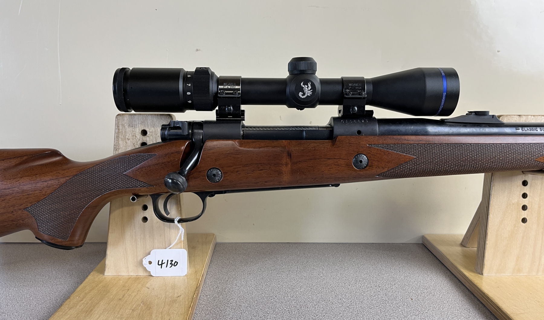 CONDITION: VG-E OVERALL INCL BORE. SPECS: 23-1/2IN BBL WITH IRON SIGHTS. EXTRAS: SCORPION OPTICS 3-9X40 SCOPE CLEAR WITH FINE CROSSHAIRS. S/N: G158821