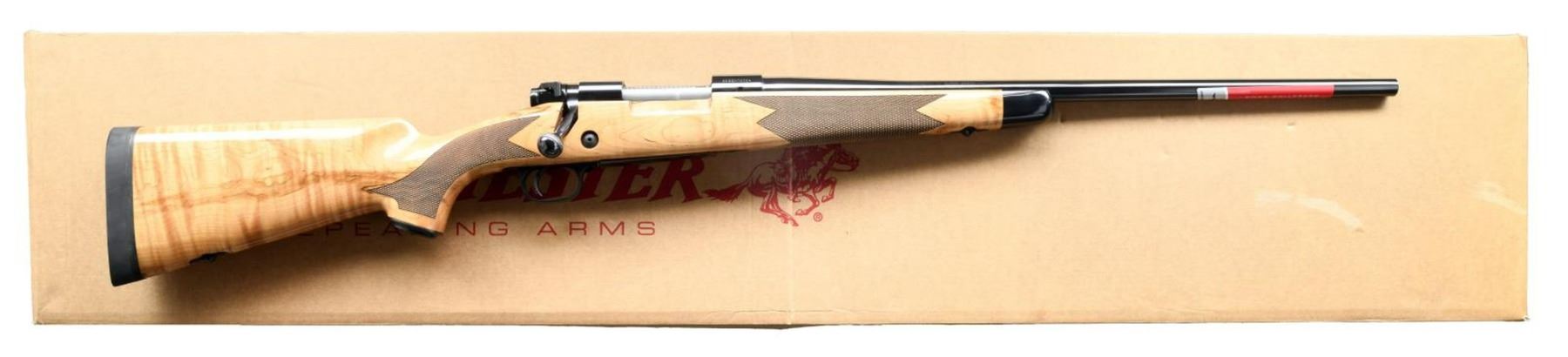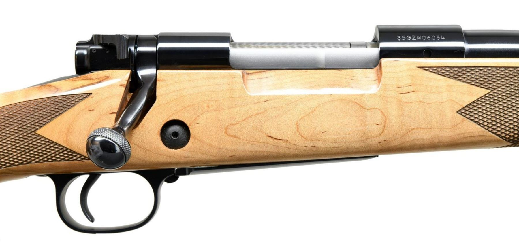 Cal. 6.5 Creedmoor. S# 35GZN06084. Bbl. 22". Receiver is drilled & tapped for scope mounting. Newer production Supergrade rifle. Matching numbered bolt. Blue finish. Factory sticker present on bbl. Ebony tipped checkered maple stock w/ ebony tip, bottom mounted sling studs & Decelerator recoil pad. LOP: 13 5/8". UNATTACHED ACCESSORIES: matching numbered factory box w/ styrofoam inserts, cable lock & manual. CONDITION: all aspects near excellent. PROVENANCE: The Collection of Gun Sport Ltd owned by Jon R. Thomas. (23-3672/MJC). MODERN. $800-1200.