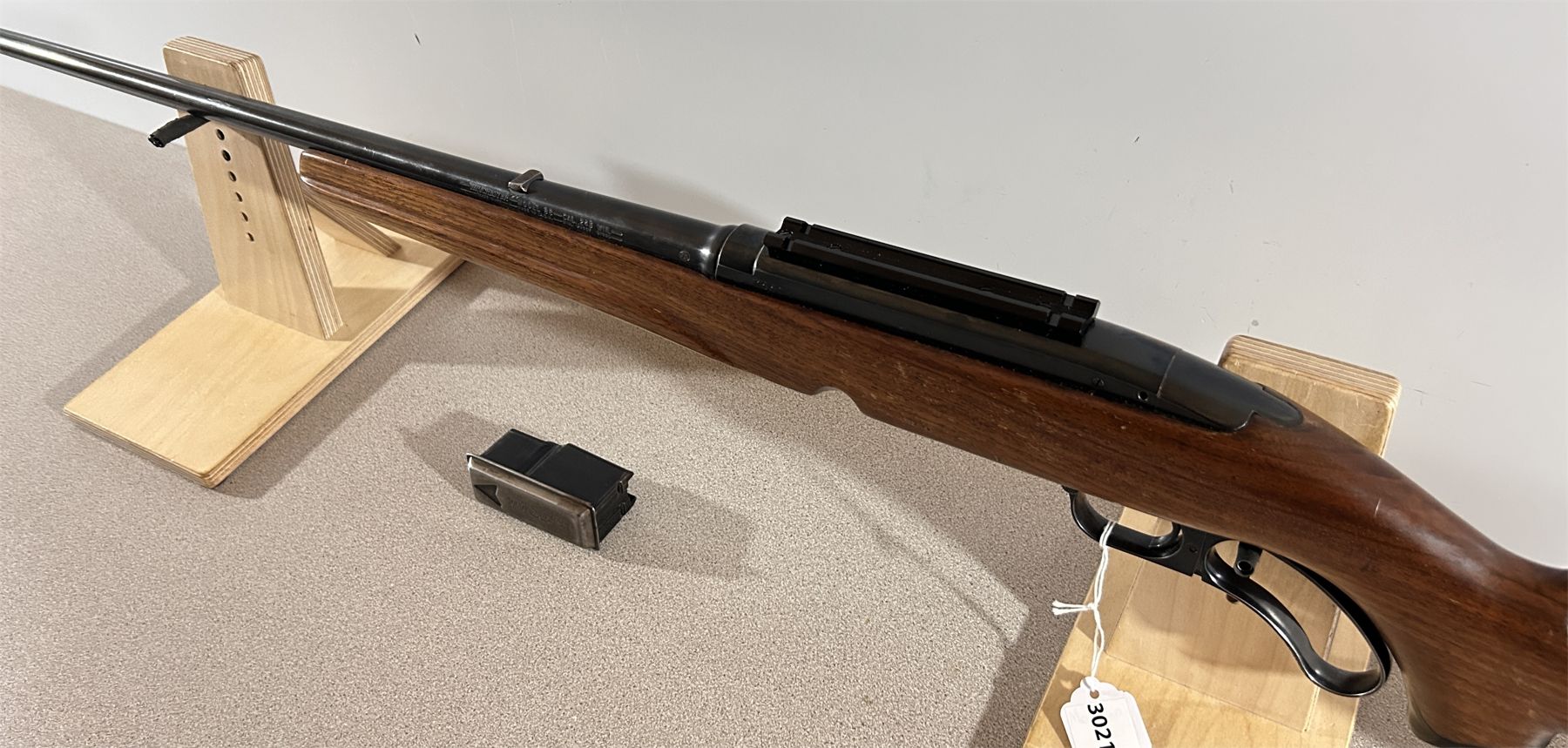 CONDITION: G - VG OVERALL INCLUDING BORE. CIRCA 1959. SPECS: CUSTOM STOCK. EXTRAS: SCOPE BASE. SLING SWIVELS. S/N: 75591.