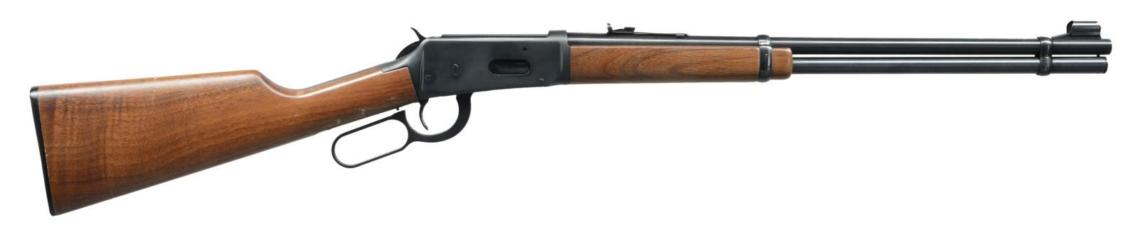 Cal. .30-30 W.C.F. S# 5109994. Bbl 20". Model 94 manufactured by Winchester in 1983. Left side of barrel bears the Winchester trademark logo followed by stampings stipulating the model and caliber designations, as well as Winchester's manufacturer information. Matte blued receiver, with blued barrel, barrel band, and lever. Smooth wood buttstock and forend. CONDITION: metal components retain the majority of their original factory blue finishes, exhibiting some scattered superficial marks from handling and storage overall, with areas of surface oxidation on the receiver. Mirror bore, exhibiting well defined rifling throughout. Wood furniture shows scattered handling marks, but is otherwise sturdy and serviceable. (23-2301/MLW). MODERN. $350-600.