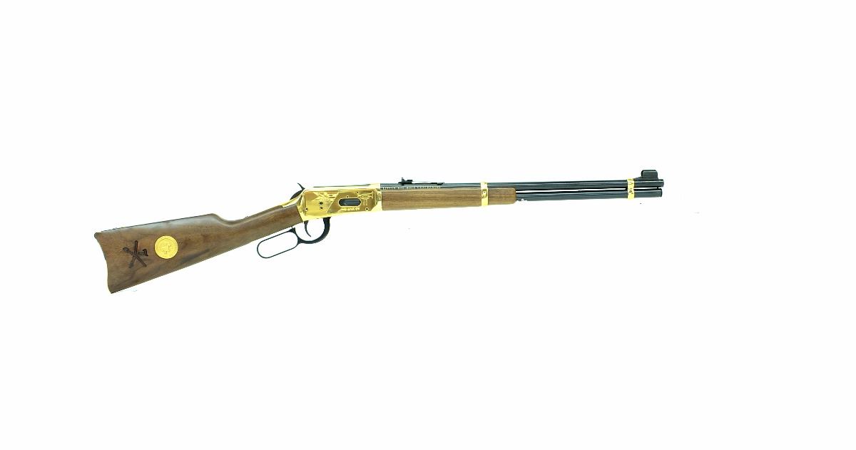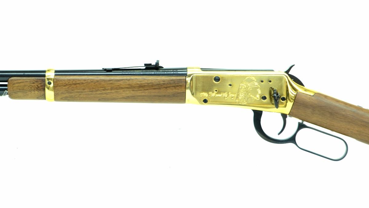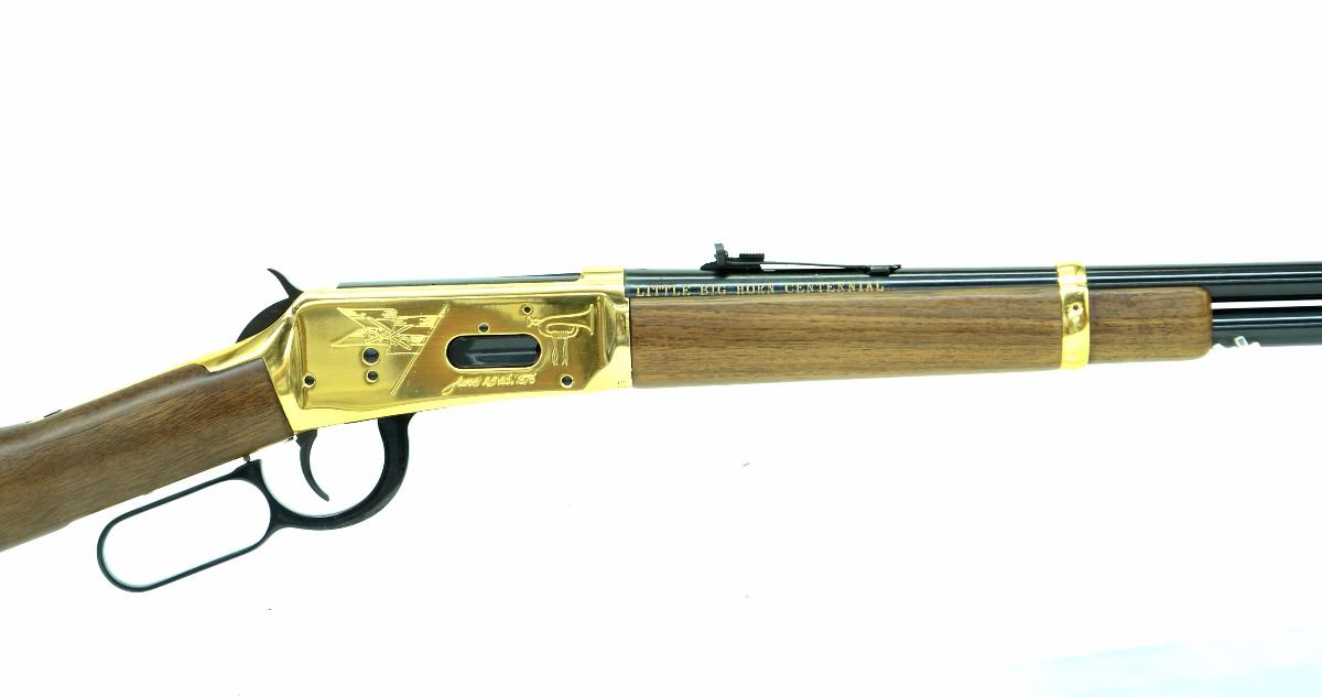 STOCK 266R-0027-G1, WINCHESTER,MODEL 94 ( EARLY MODEL) LITTLE BIG HORN CENTENNIAL 18-76-1976 COMMEMORATIVE.44 W.C.F, LEVER ACTION RIFLE, 20” BARREL, ORIGINAL BOX, WAX PAPER & BOOK, APPEARS UNFIRED, N.I.B, MADE IN THE U.S.A, SN.LBH00XXX