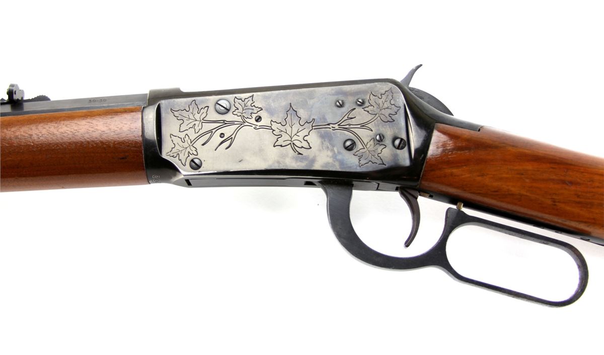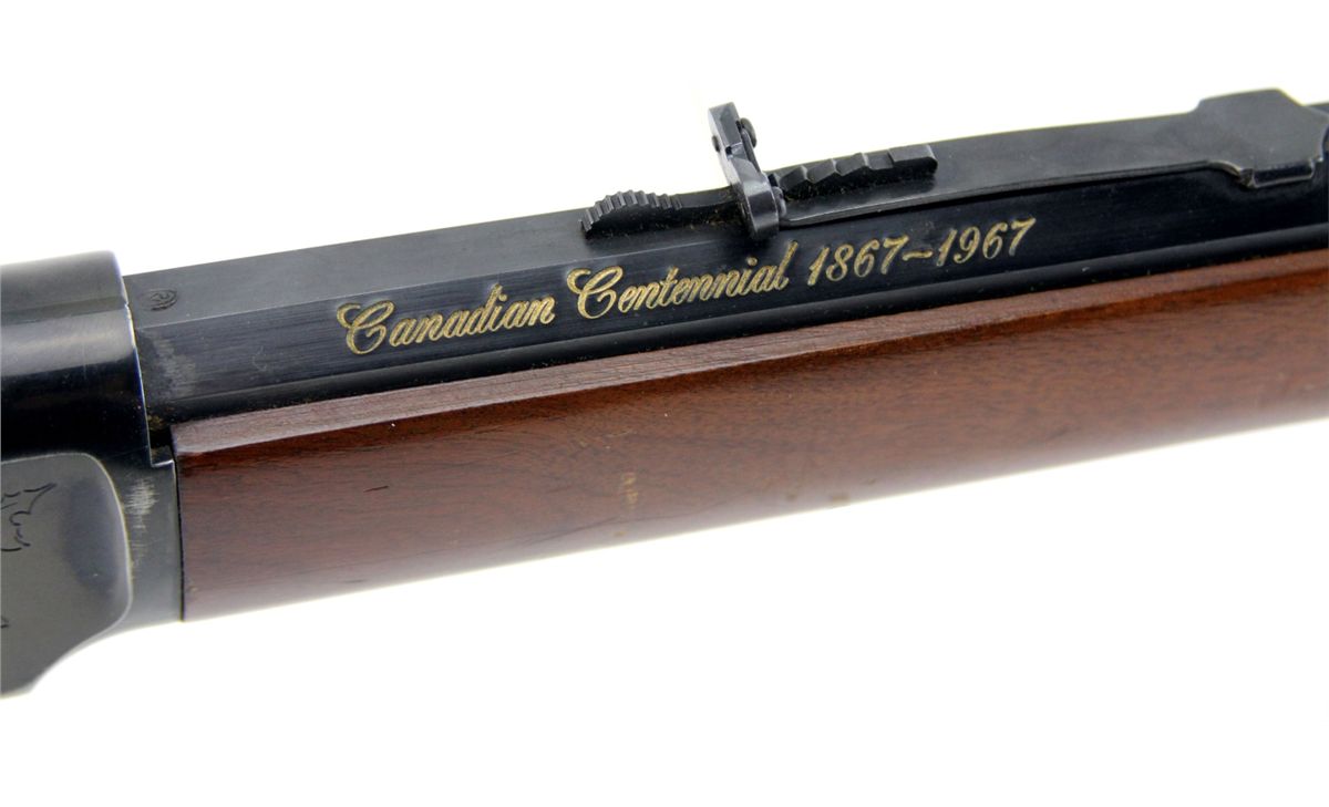 WINCHESTER MODEL 94 CANADIAN CENTENNIAL 1967 Winchester Model 94 Canadian Centennial lever action rifle. 25 inch heavy octagon barrel with buckhorn sight in the rear and a beaded front sight. Marked "Canadian Centennial 1867 - 1967" on the right side of the barrel and tang is marked "Canadian Centennial '67". Type: rifle lever Manufacturer: winchester Model: 94 Caliber / Gauge: .30-30 Serial Number: 15202