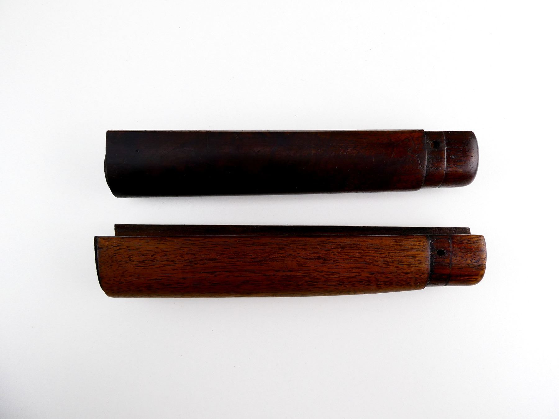 LOT INCLUDES; (2) WOODEN FORENDS, SMOOTH, MAY HAVE SMALL CRACKS & CHIPS, OAL APPROX. 8". MAY REQUIRE FITTING. SEE PHOTOS.