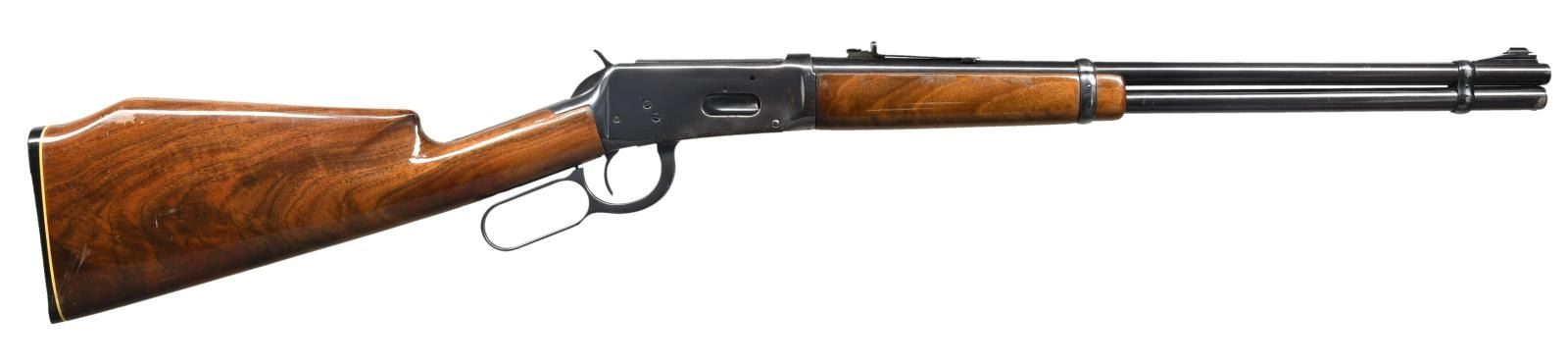 Cal. .30-30 W.C.F. S# 2420203. Bbl 20". Manufactured in 1960. Reapplied blue finish with a replacement Reinhart Fajen Monte Carlo wood buttstock and smooth wood forend. Ramp blade front sight with U-notch rear sight. CONDITION: metal components exhibit areas of wear and thinning overall with spots of oxidation overall. Very bright bore, exhibiting strong rifling throughout. Wood furniture exhibit scattered marks from handling and storage overall. (23-2053/MLW). CURIO. $400-600.