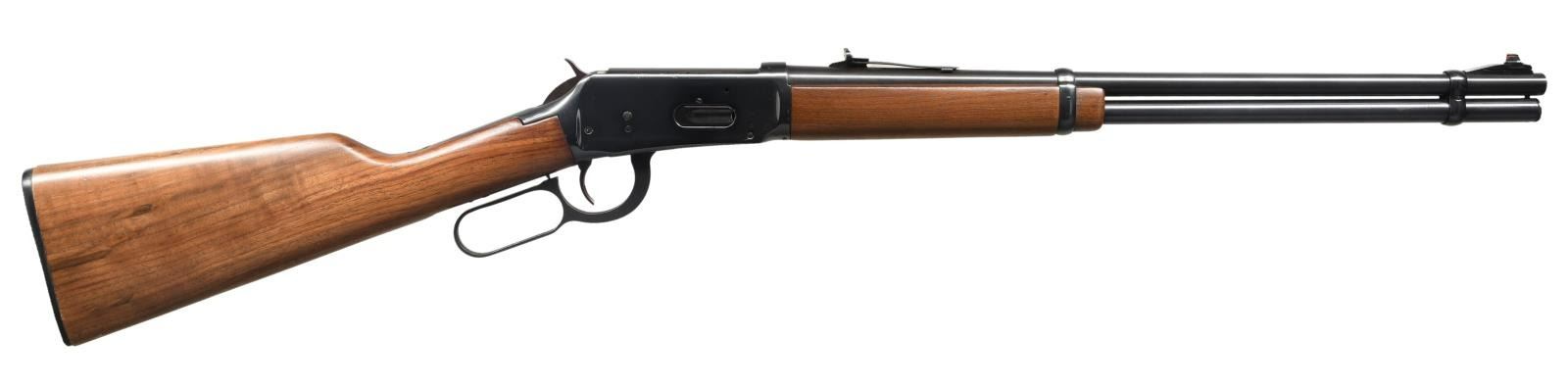 Cal. .30-30 W.C.F. S# 4136589. Bbl 20". Model 94 manufactured by Winchester in 1975. Left side of barrel bears standard markings including the model and caliber designation, as well as Winchester's manfuacturer information. Metal components are blued, with the furniture being comprised of smooth wood. Blade front sight with U-notch rear sight. CONDITION: metal components retain the majority of their original factory blue finish, exhibiting areas of scattered surface oxidation and some scattered superficial handling marks overall. Brilliant mirror bore, exhibiting well defined rifling throughout. Wood furniture shows some superficial marks from handling and storage, but is otherwise very good. (23-2300/MLW). MODERN. $400-600.