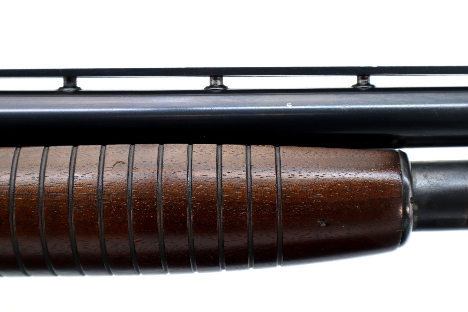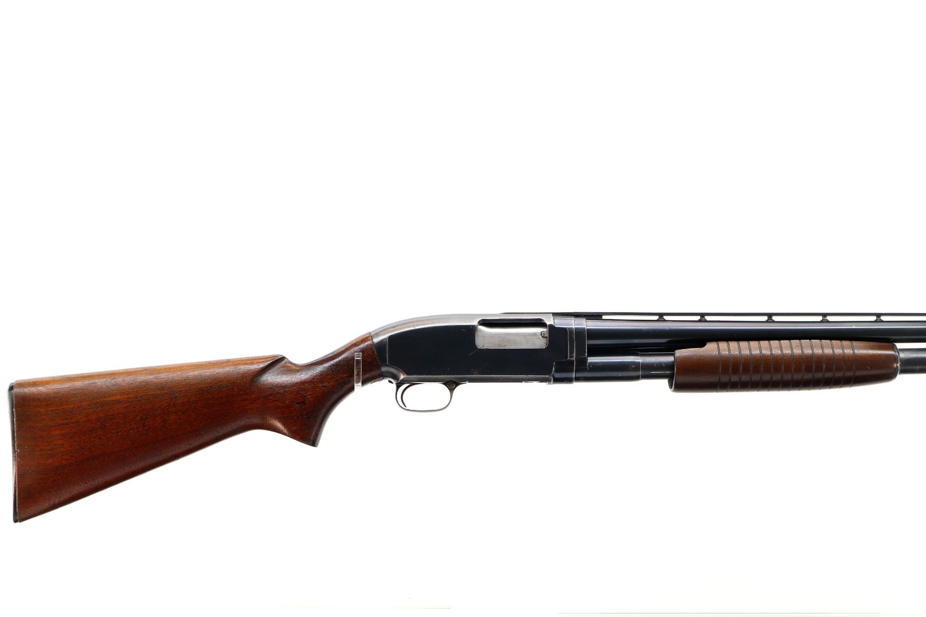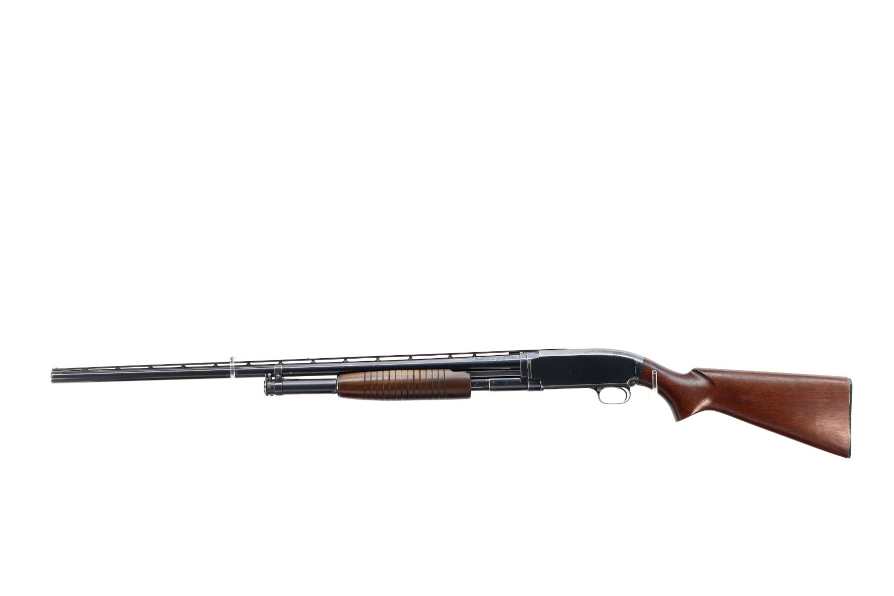 Main Description: Manufactured 1954. Silver front and mid rib beads, blued finish, vent rib. Two piece wood stocks, grooved forearm, pistol grip, checkered black polymer butt plate.