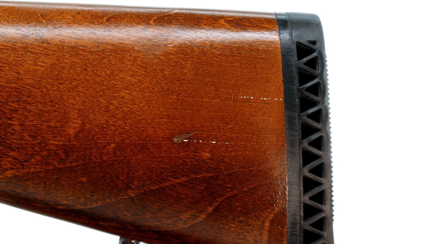 Main Description: Brass bead, blued vent rib barrel, black alloy receiver drilled and tapped with plug screws installed, holes may be off center. Two piece wood stocks, grooved forearm, pistol grip, slip on brown vented rubber recoil pad, has black vented pad underneath, swivel studs.