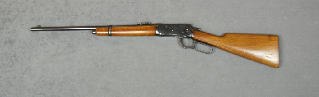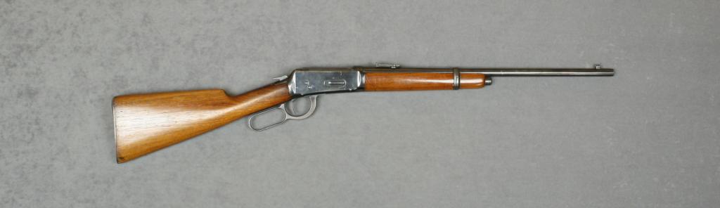 WINCHESTER Model 1894 saddle ring carbine, #505226, .30 WCF, 20" barrel, factory button mag and factory shotgun butt. Shows an old refinish, is missing the ring from the mount, retains approximately 90-95% of the newfinish. Bore is good, and should improve with a good cleaning. Est. $600-$1,200.