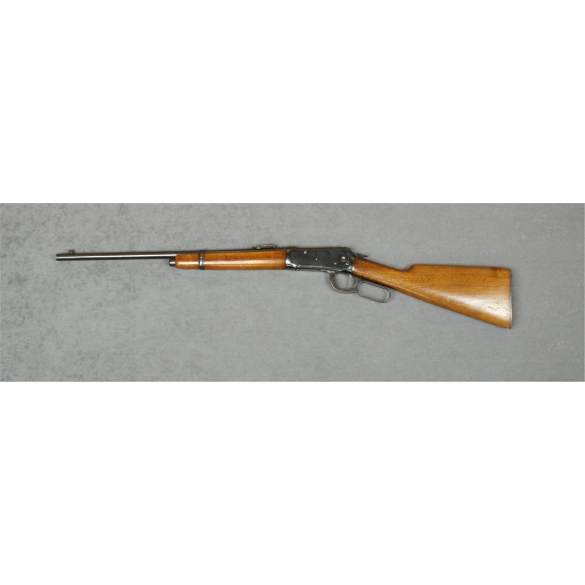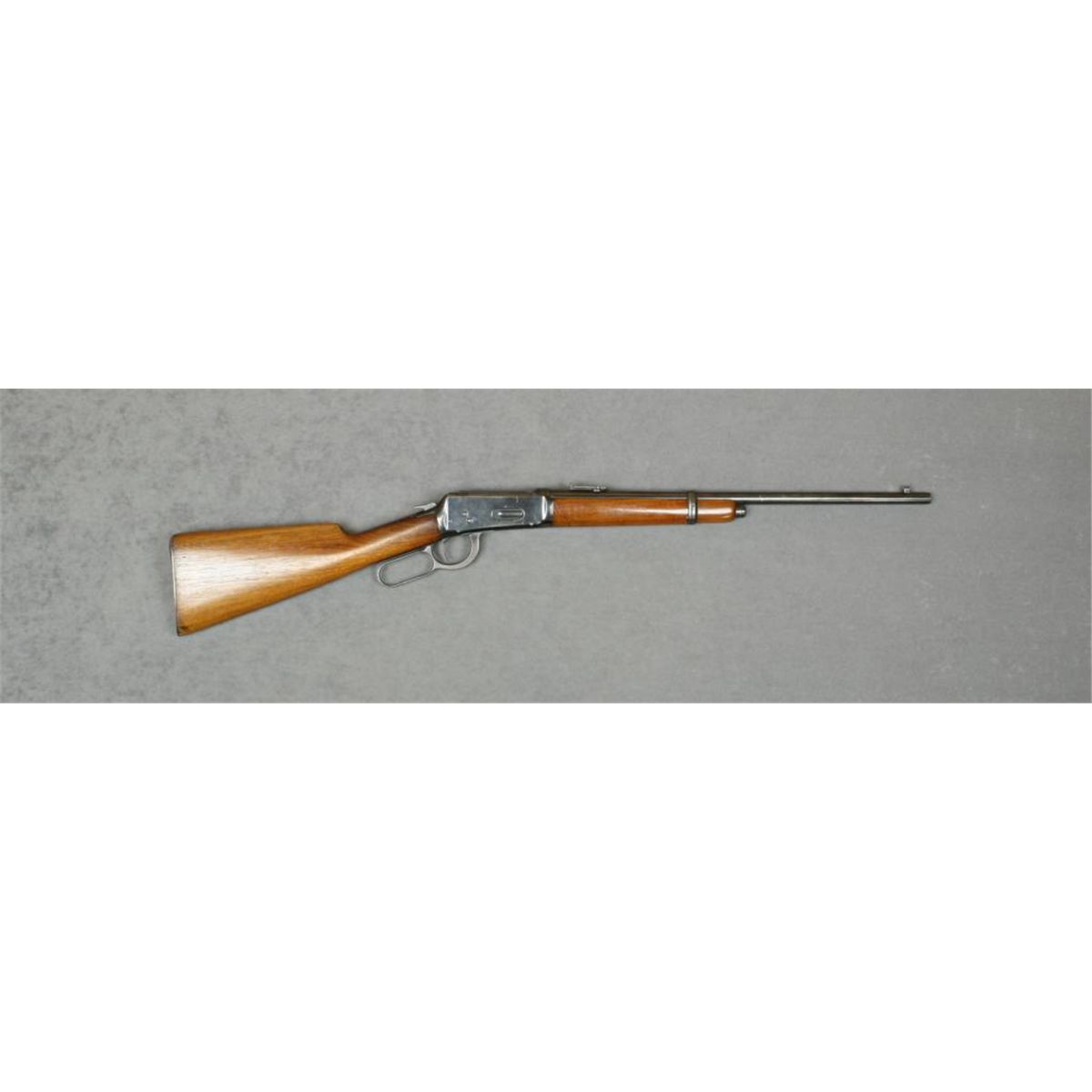 WINCHESTER Model 1894 saddle ring carbine, #505226, .30 WCF, 20" barrel, factory button mag and factory shotgun butt. Shows an old refinish, is missing the ring from the mount, retains approximately 90-95% of the newfinish. Bore is good, and should improve with a good cleaning. Est. $600-$1,200.