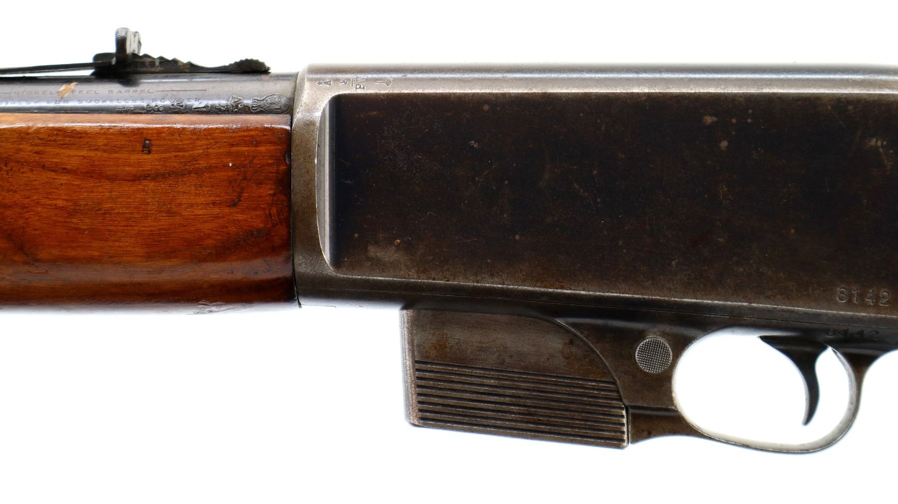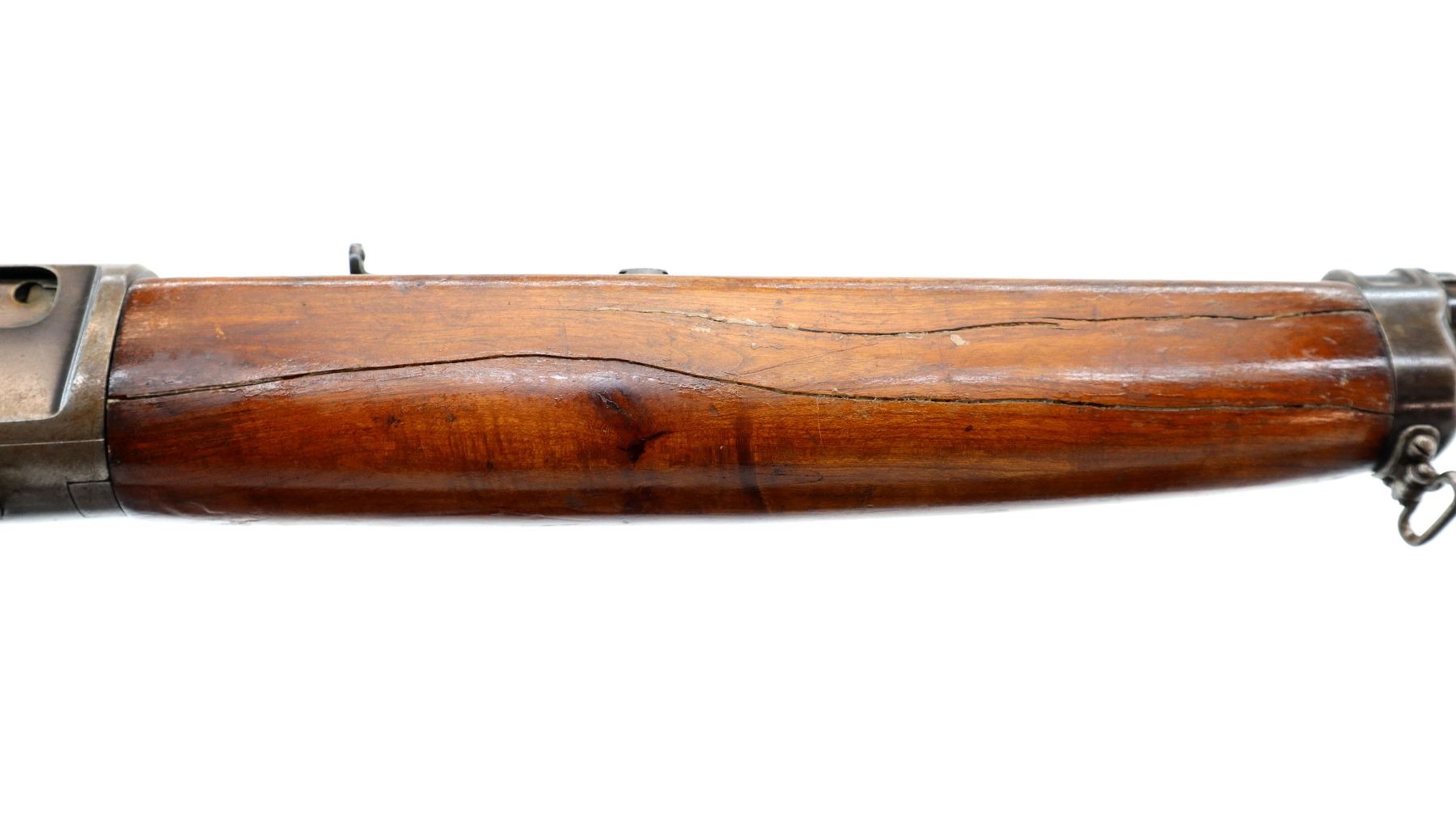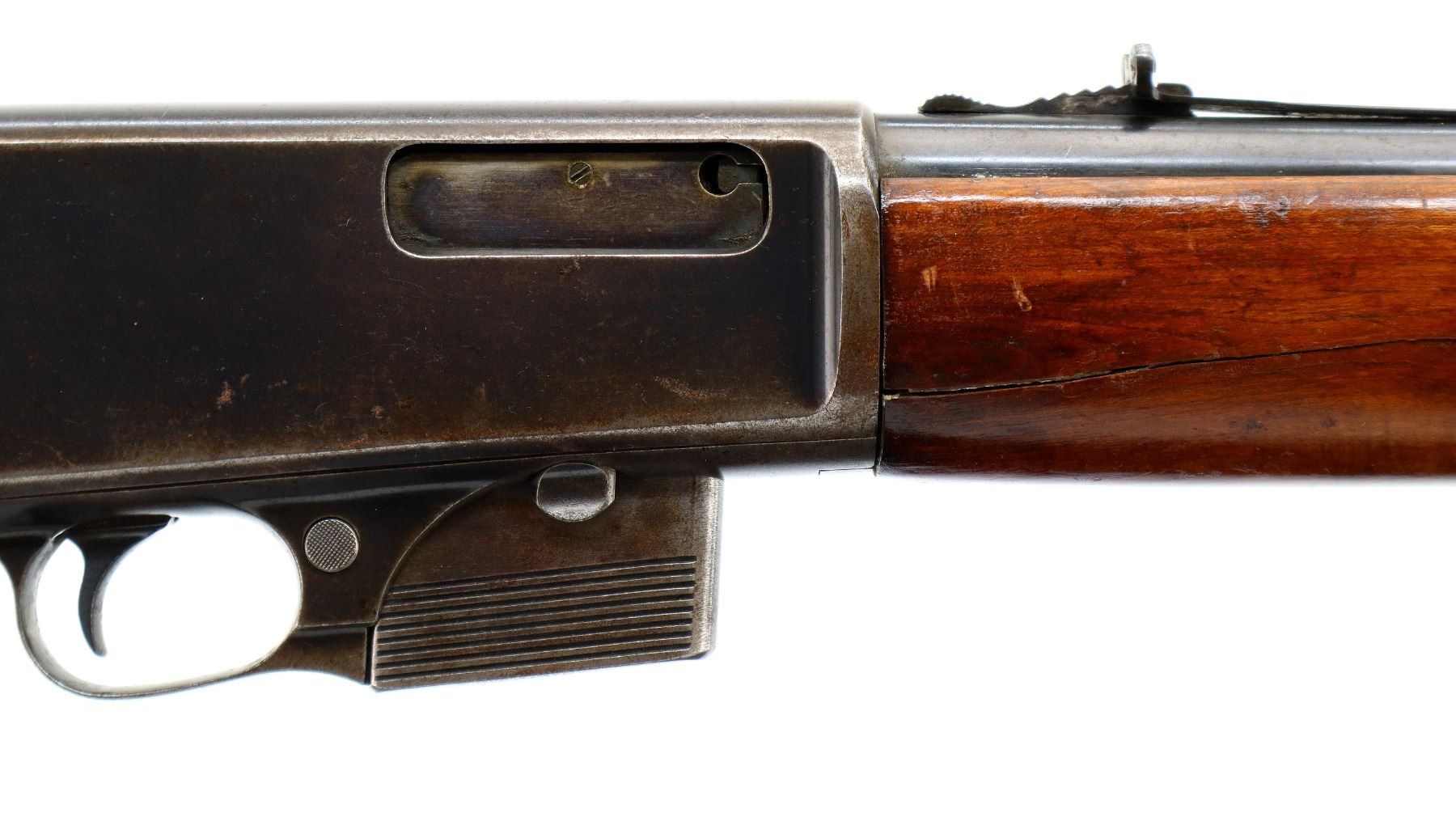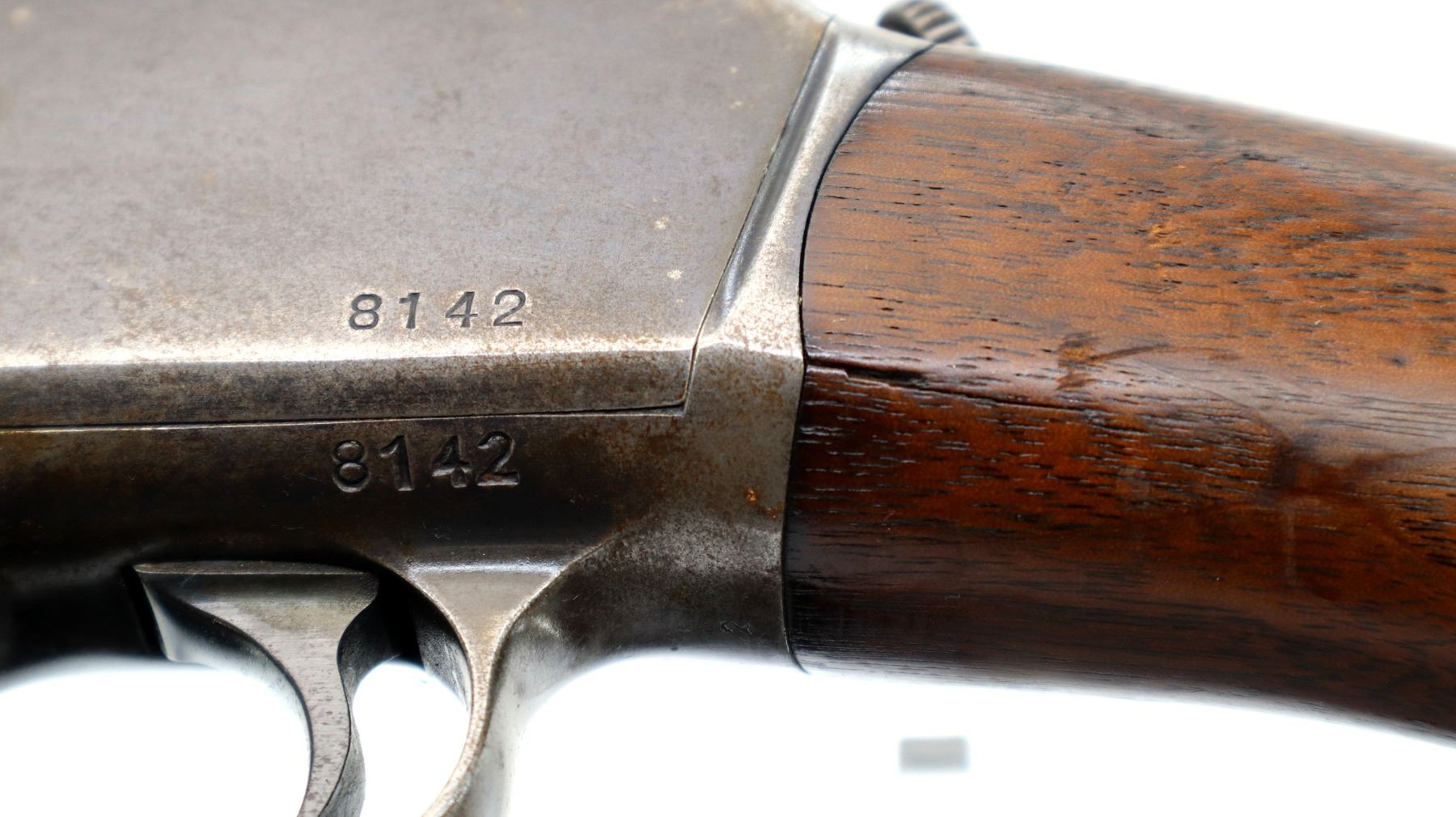 Main Description: Blade front sight with ramp, adjustable u notched rear sight, blued finish, Belgian proof marks. Two piece wood stocks, forearm is chipped and cracked, pistol grip cracked behind receiver, checkered black polymer butt plate, sling swivels.