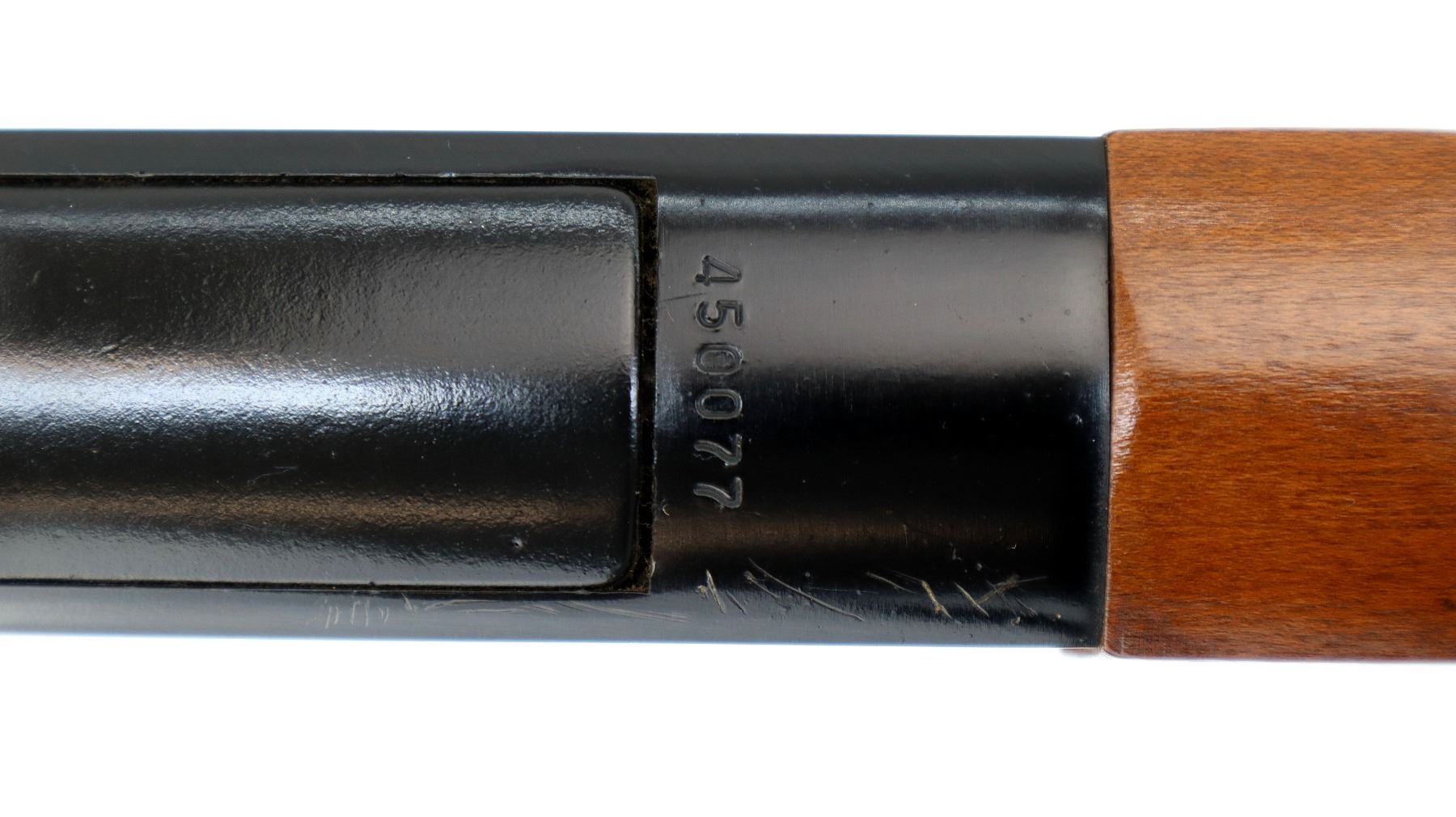 Wear: Metal finish shows some light rust speckles, scratches, handling marks and wear. Stocks show some marks, scratches and wear.