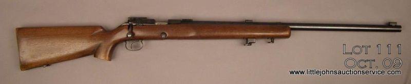 WINCHESTER Model 52, #78770CT, .22 cal. match grade rifle. The rifle shows factory bull barrel, target stock with adjustable swivels, scope blocks on barrel and base for receiver sight on left rear of action. Very good plus to near finecondition, 95-97% original blue, some small dings in wood. Excellent bore. Est. $600-$1200.