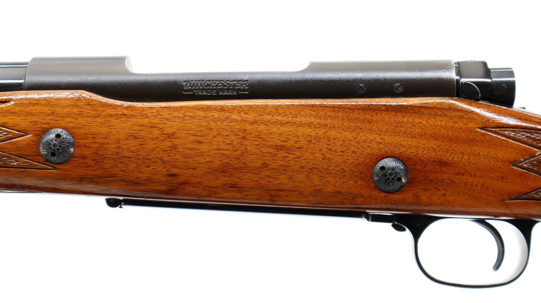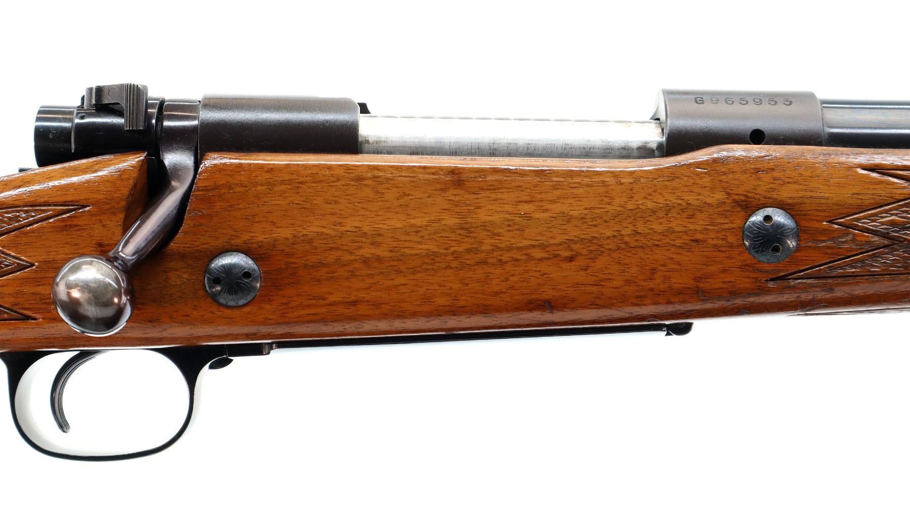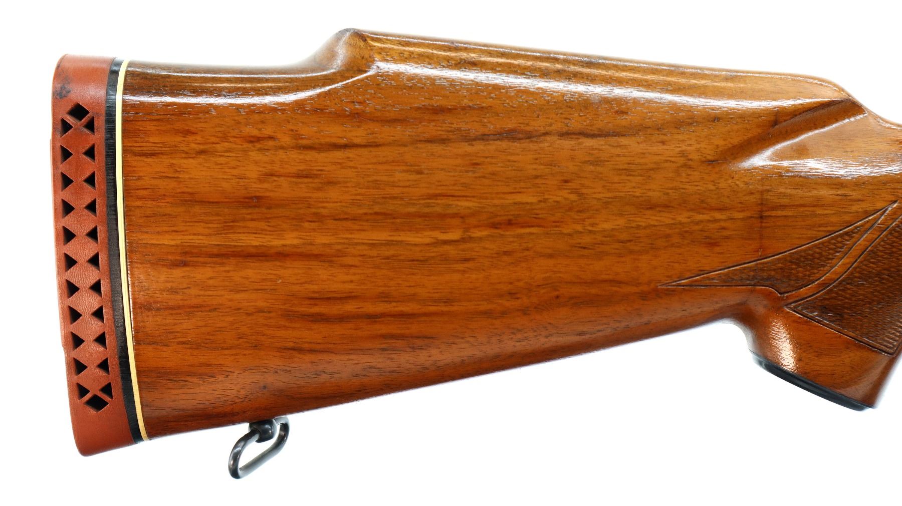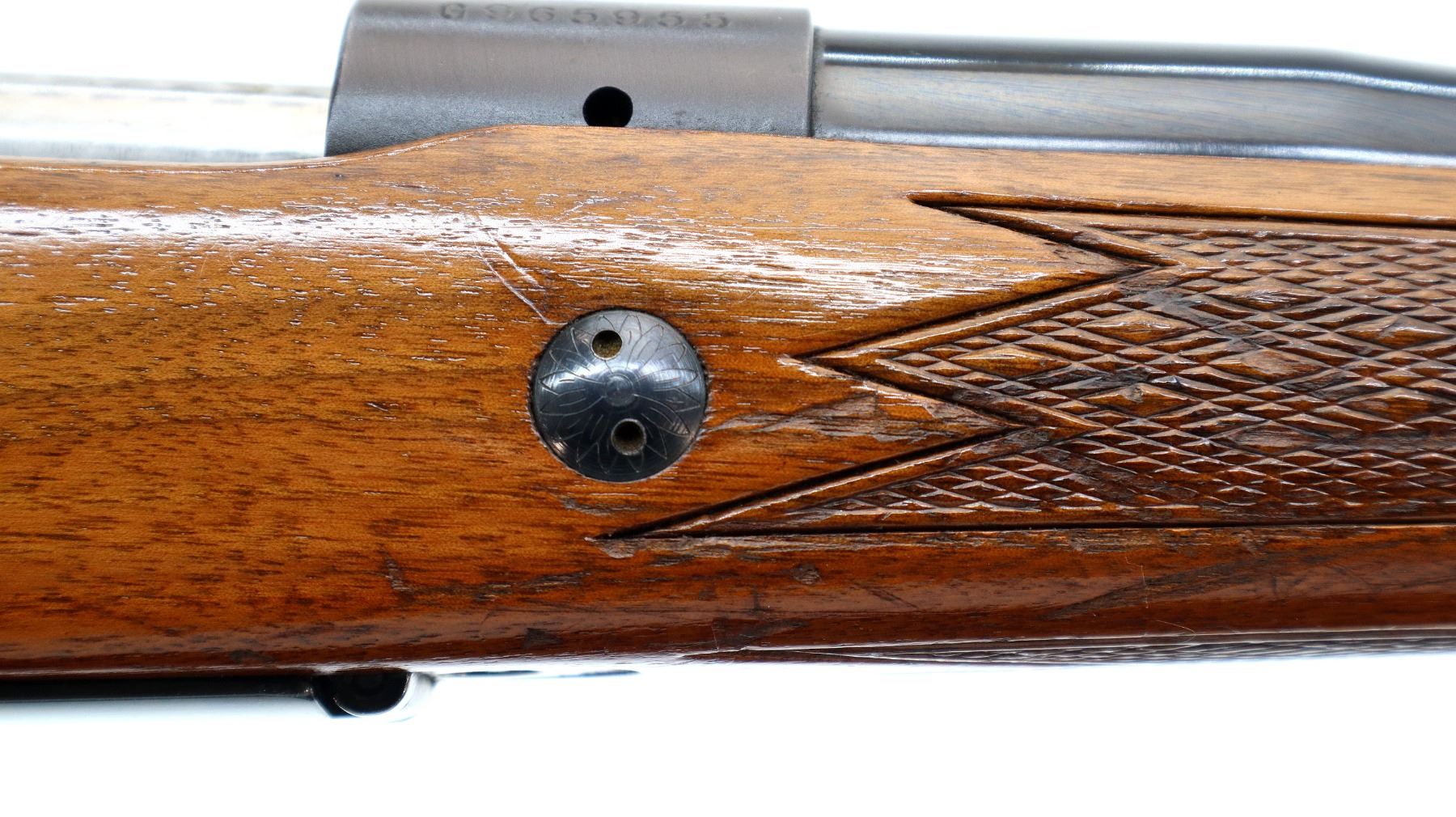 Main Description: Manufactured 1970. Blade front sight with hood and ramp, adjustable u notched rear sight, polish blued barrel, Satin finish receiver drilled and tapped with plug screws installed, jeweled bolt with smooth knob. One piece wood stock, checkered forearm and pistol grip, cheek rest, red vented rubber recoil, 13.5" LOP, steel grip cap, hinged floor plate, sling swivels.
