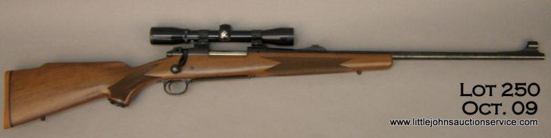 WINCHESTER Model 70 XTR Sporter, # G1772677, .338 Win Mag., 23.5” barrel, blued finish, checkered walnut stock. Rifle is in excellent overall condition showing little use, if any. Stock is excellent, showing only a few minor marks fromstorage and handling. Mounted with a Bushnell Sport view 4x 32 scope. Est. $300-$600.