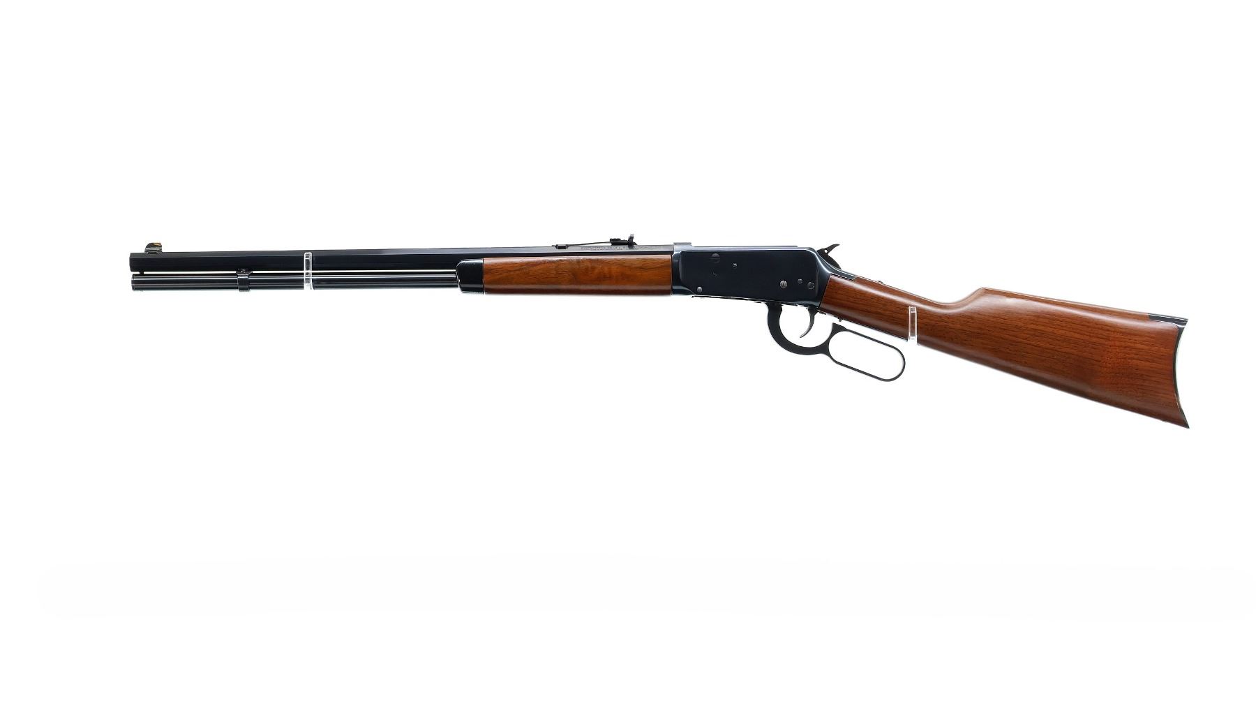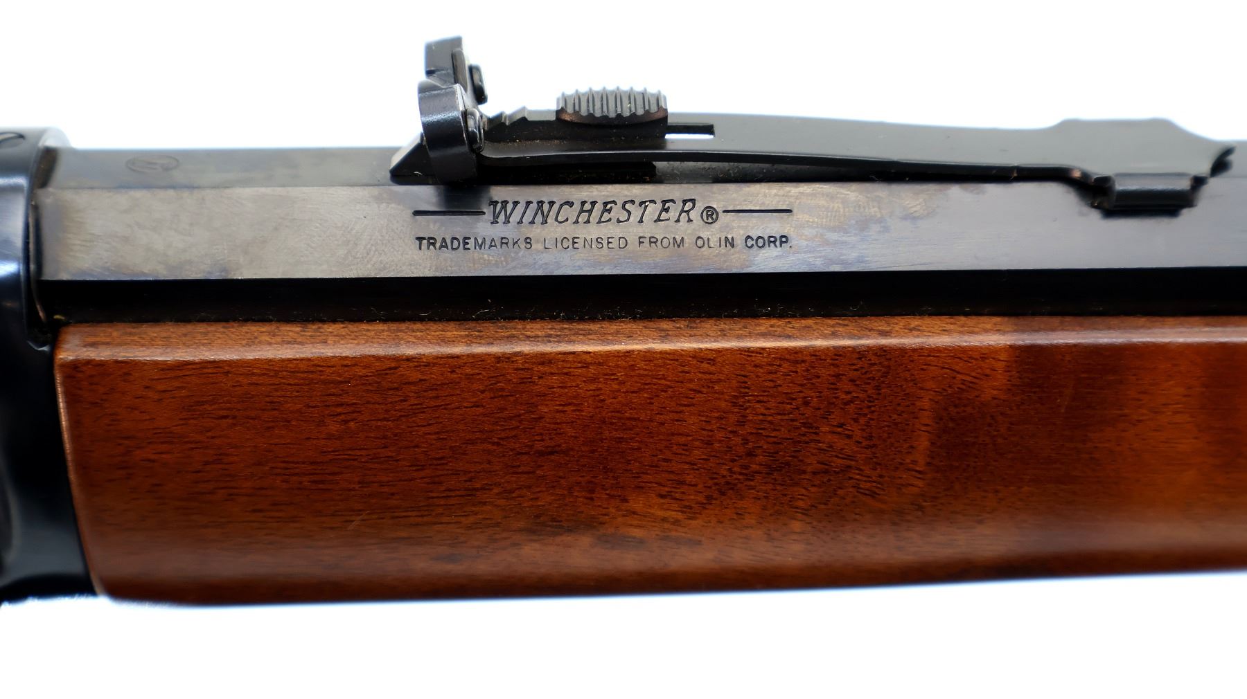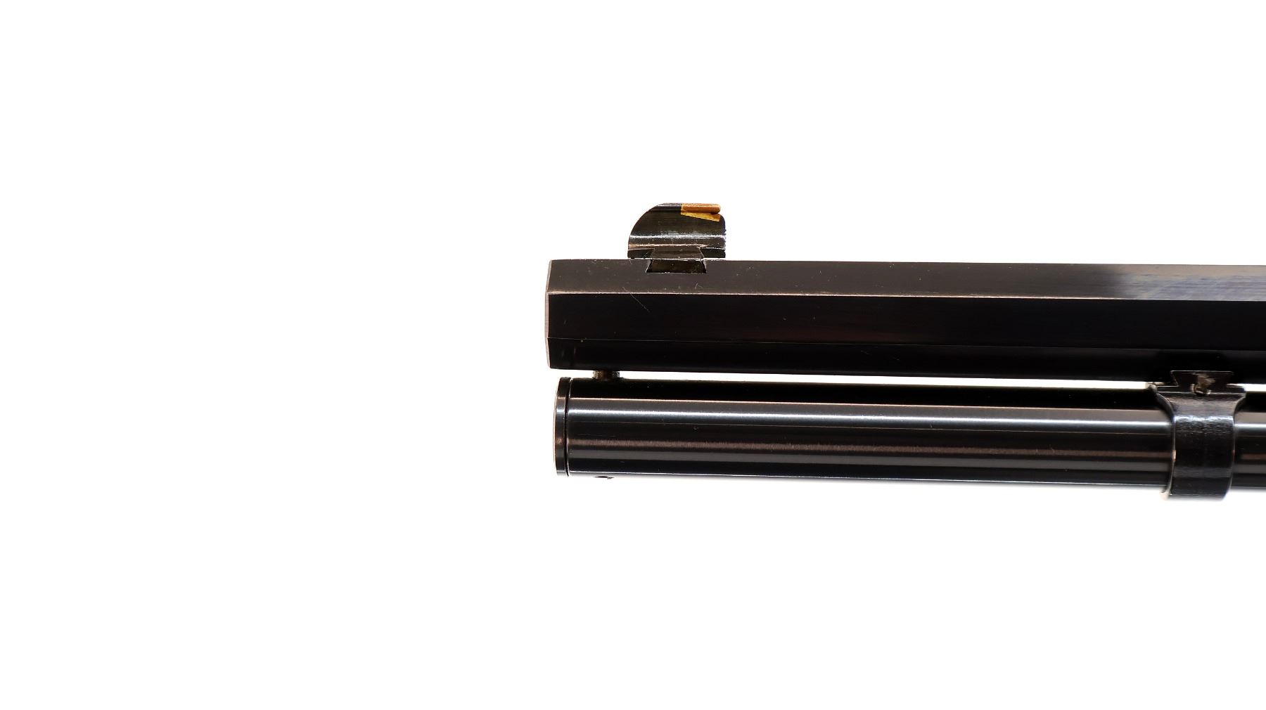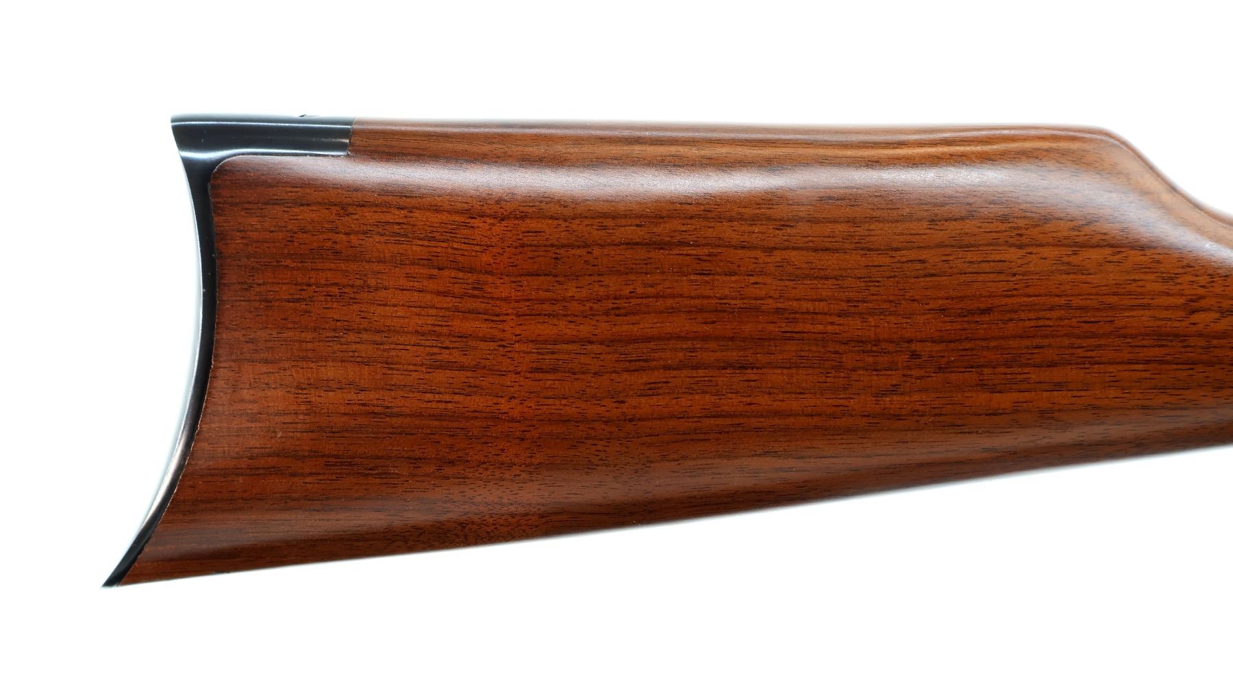 Main Description: Blade front sight, adjustable u notched rear sight, polish blued finish, octagon barrel, receiver drilled and tapped with plug screws installed, grooved spur hammer, tang safety. Two piece satin finish wood stocks, straight grip, smooth curved steel butt plate, full length magtube.
