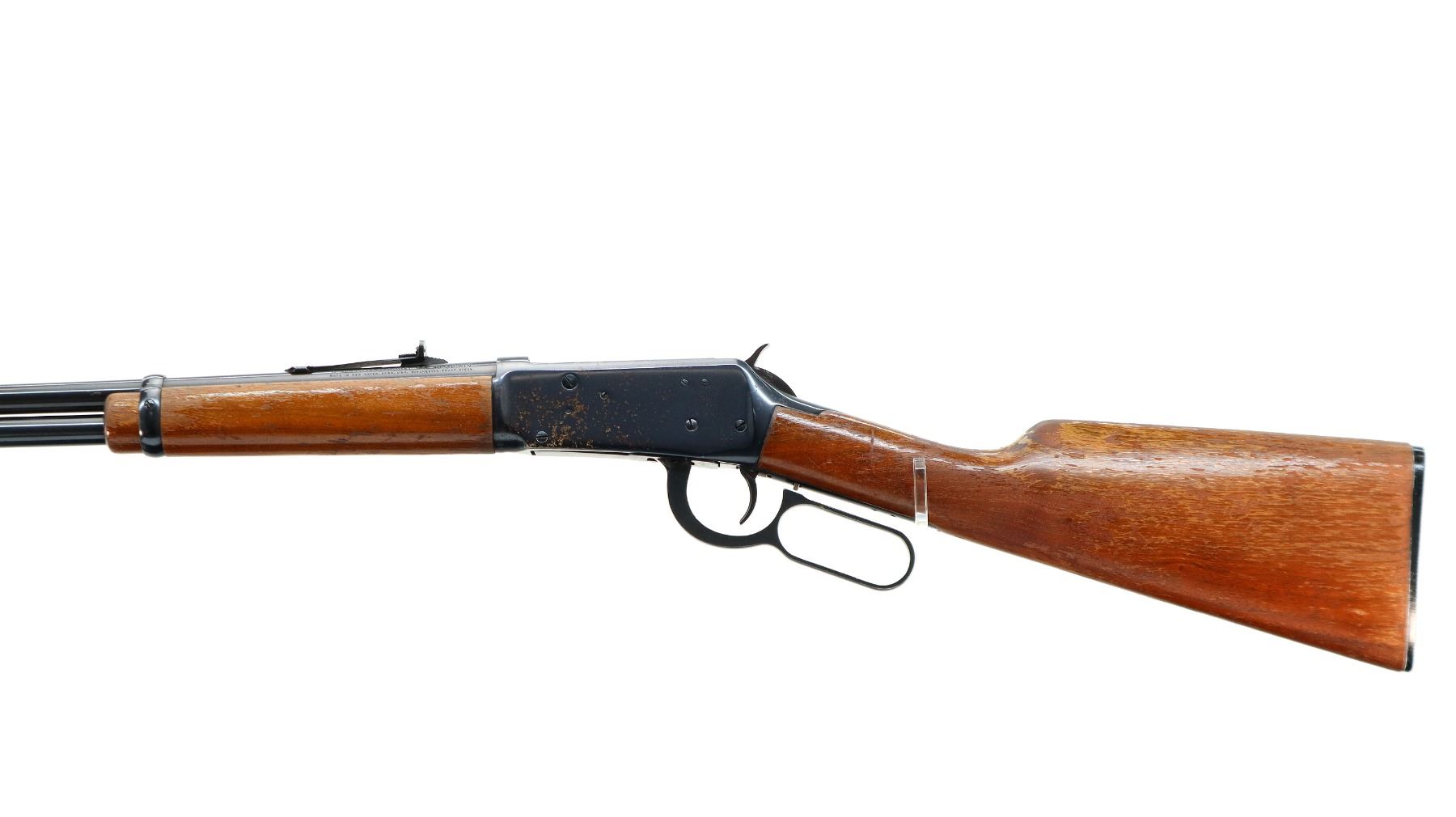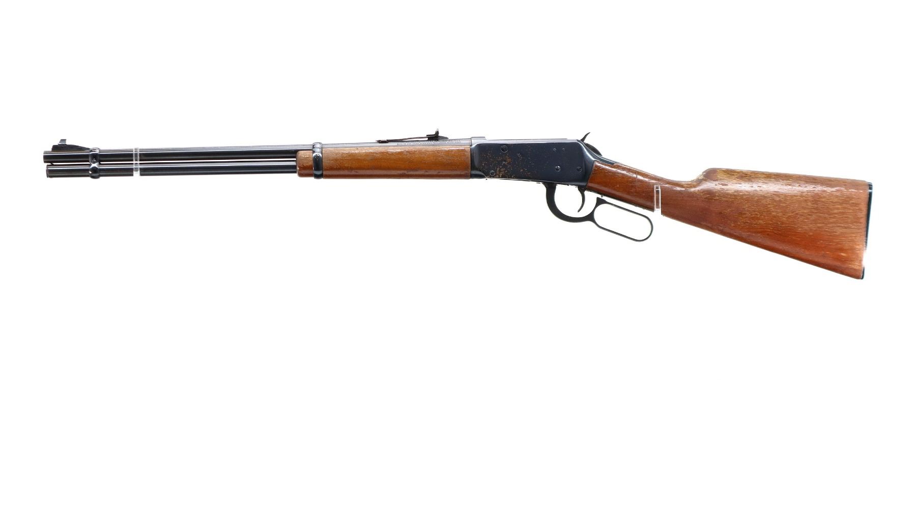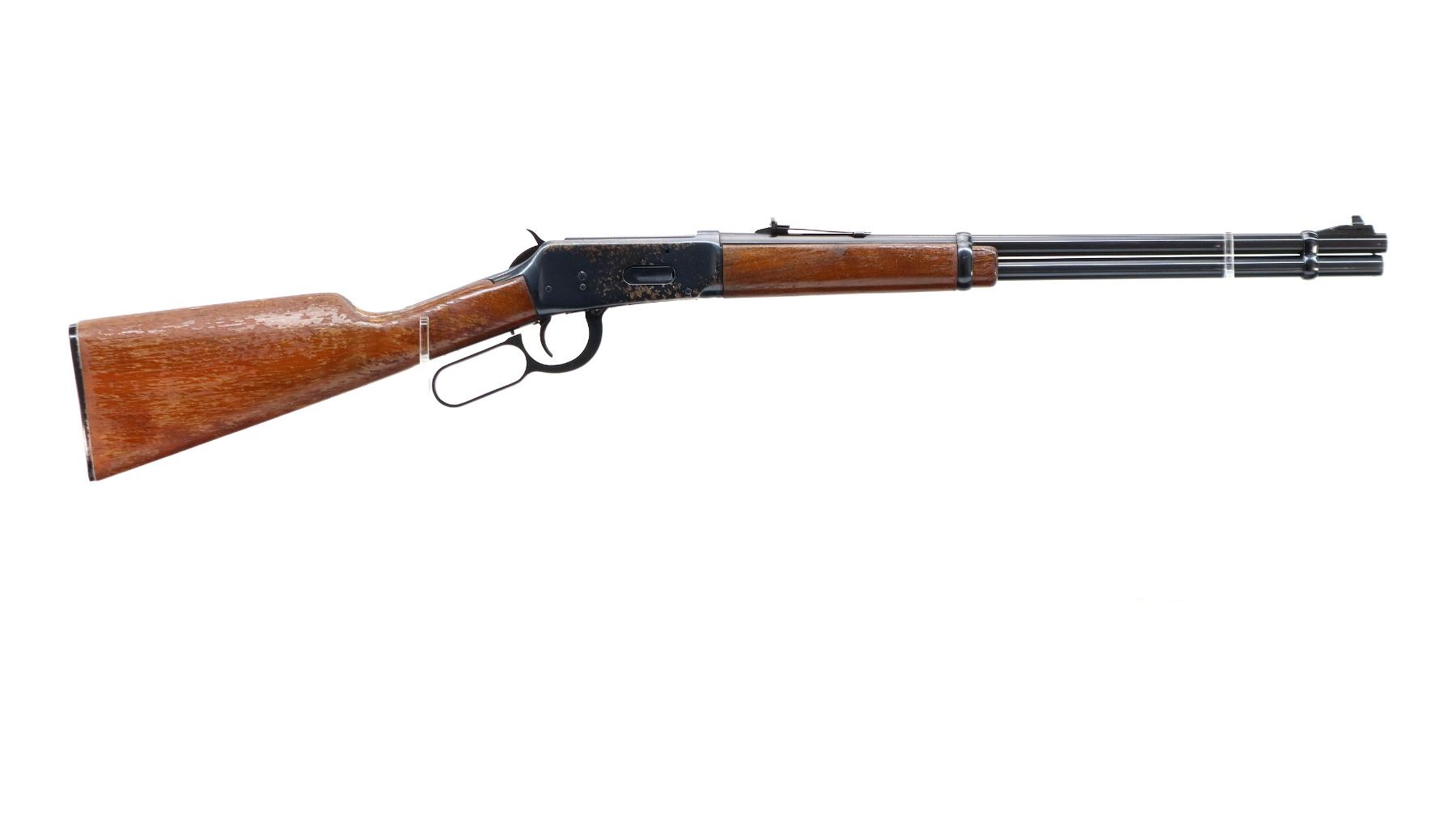 Main Description: Manufactured 1974. Blade front sight with ramp, adjustable u notched rear sight, blued finish, grooved spur hammer. Two piece wood stocks, straight grip, checkered black polymer butt plate, full length magtube.