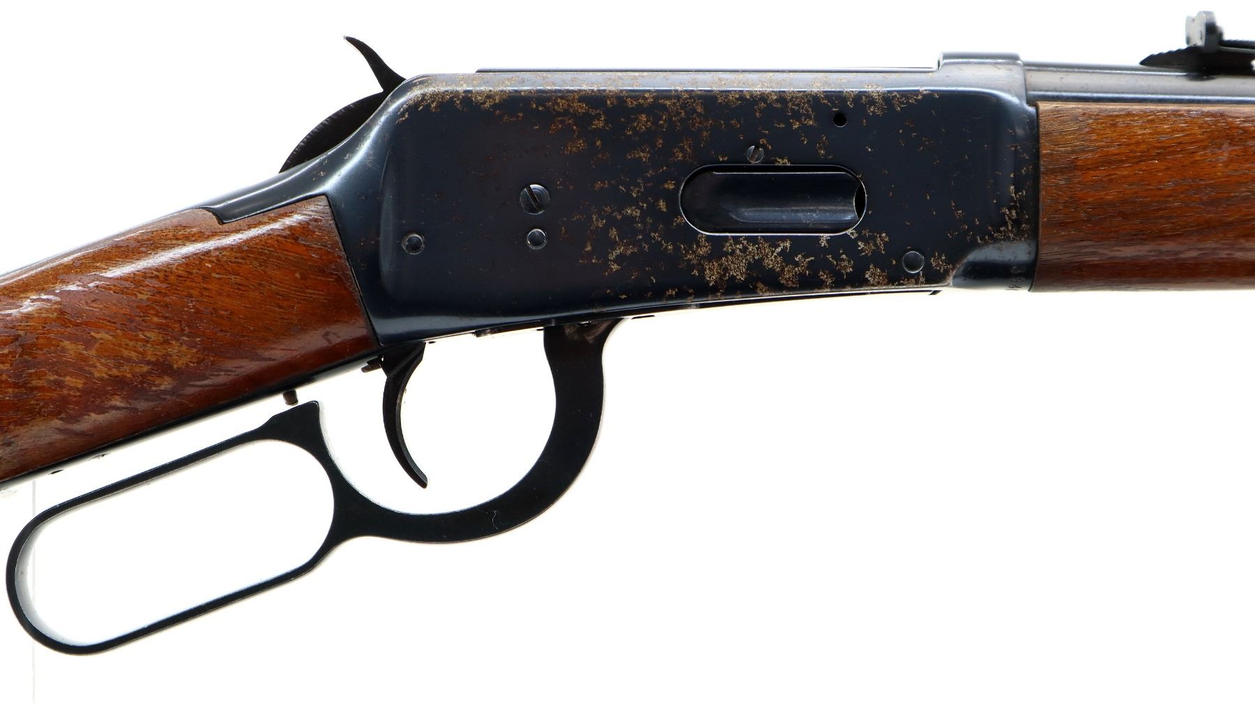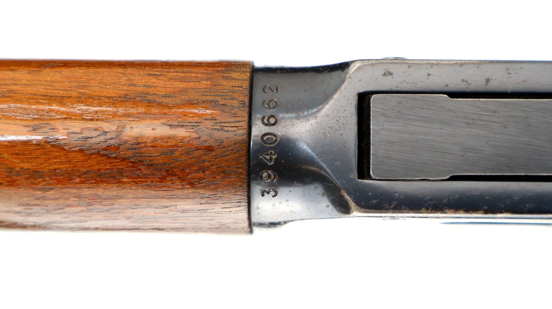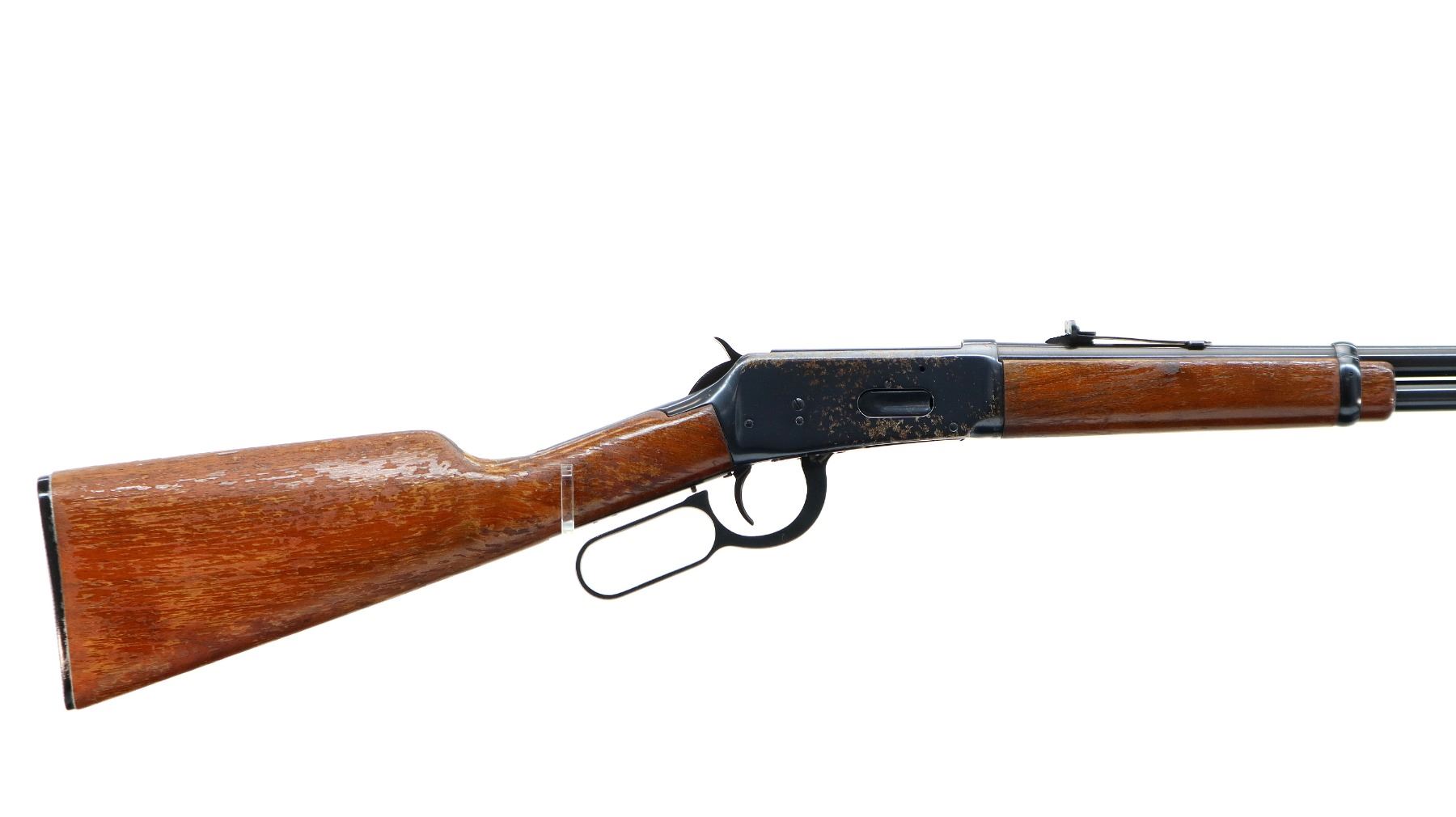 Main Description: Manufactured 1974. Blade front sight with ramp, adjustable u notched rear sight, blued finish, grooved spur hammer. Two piece wood stocks, straight grip, checkered black polymer butt plate, full length magtube.