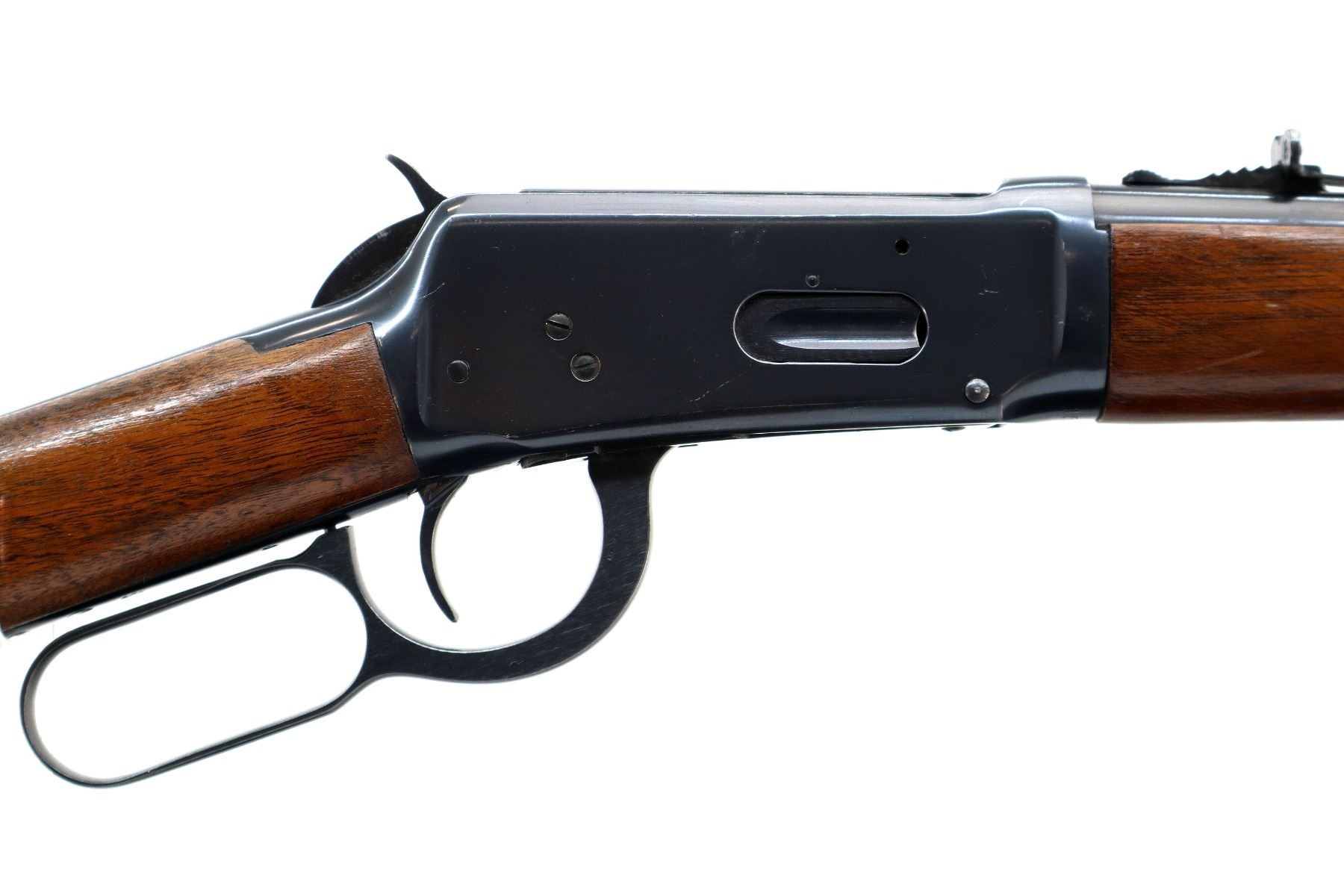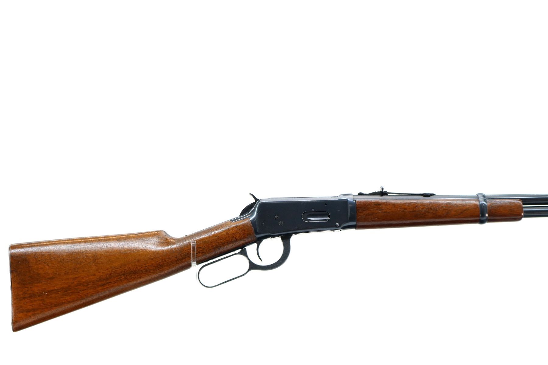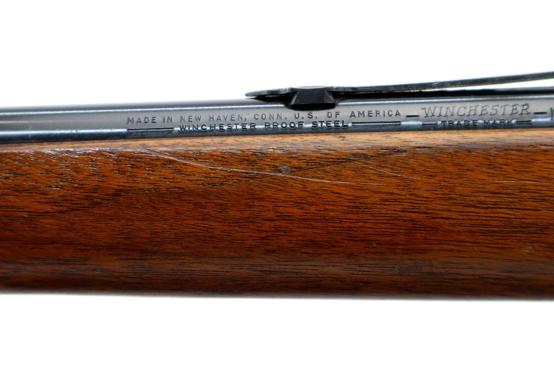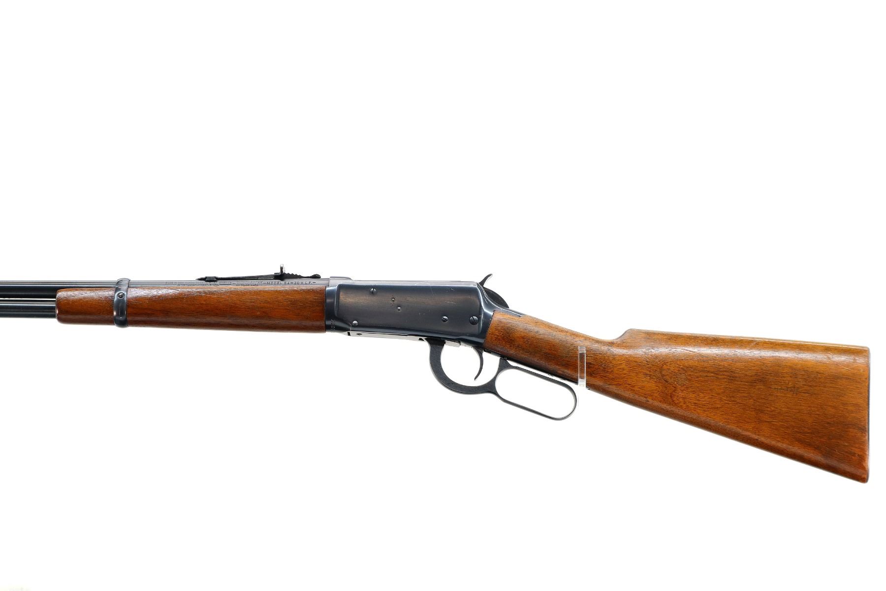 Main Description: Manufactured 1948. Note: this serial number with an X at the end usually indicates a duplicate serial number from the factory. Blade front sight with hood and ramp, adjustable u notched rear sight, blued finish, grooved spur hammer. Two piece wood stocks, straight grip, checkered steel butt plate, flat front barrel band, full length magtube.