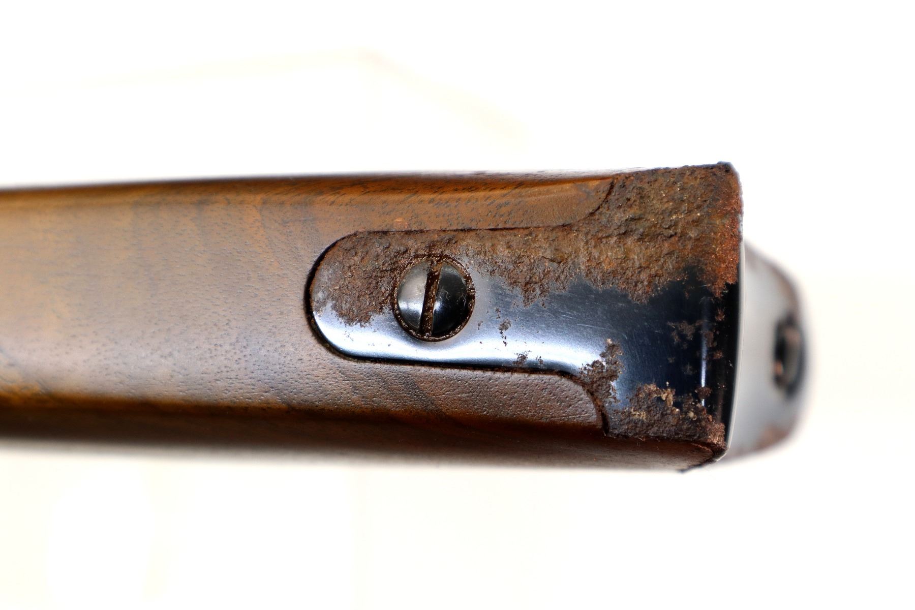 Wear: Note: this rifle appears to have been new, now has light rust speckles on some parts, butt plate is pitted with rust.