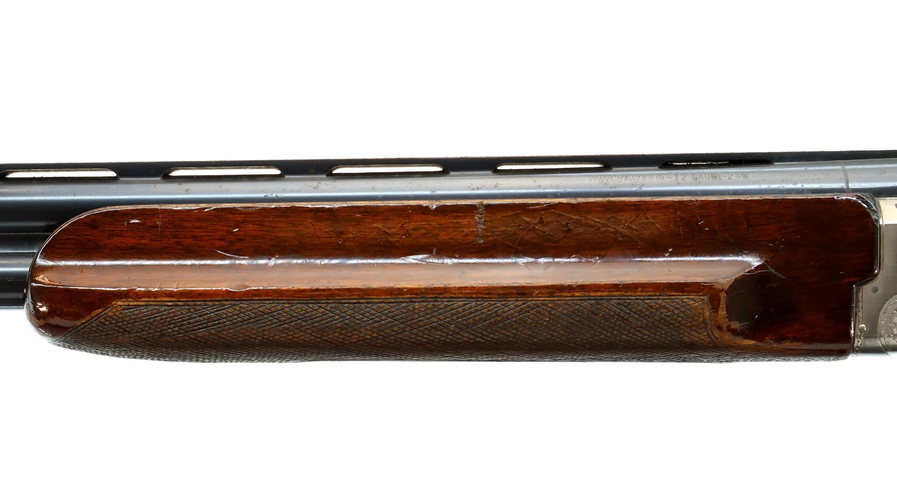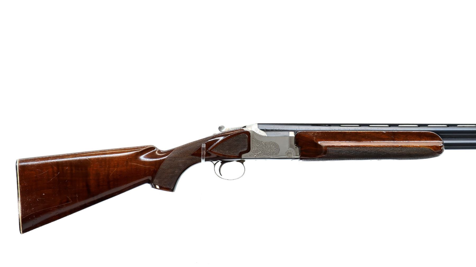 Wear: Metal finish shows some light rust speckles, scratches, handling marks and wear. Stocks show some marks, scratches and wear.