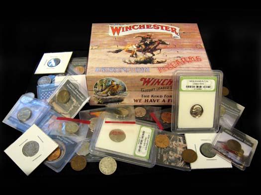 WINCHESTER OLD STYLE BOX WITH OLD COIN COLLECTION