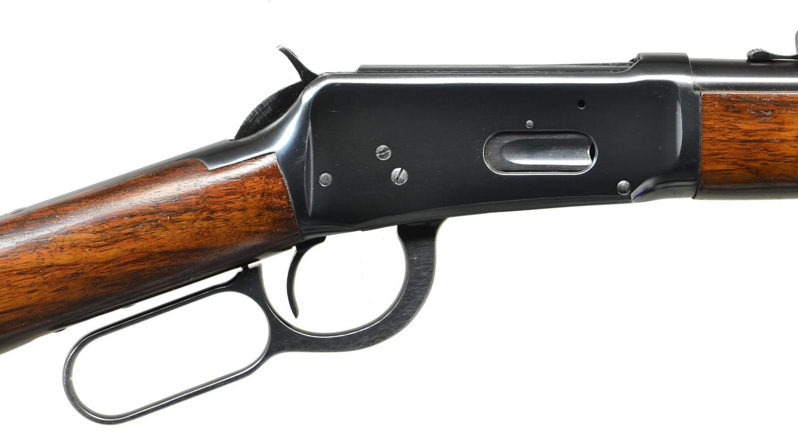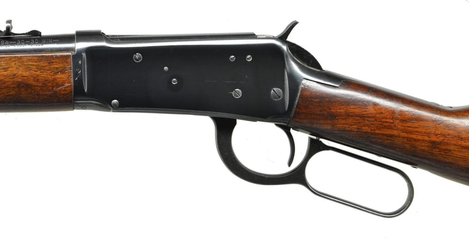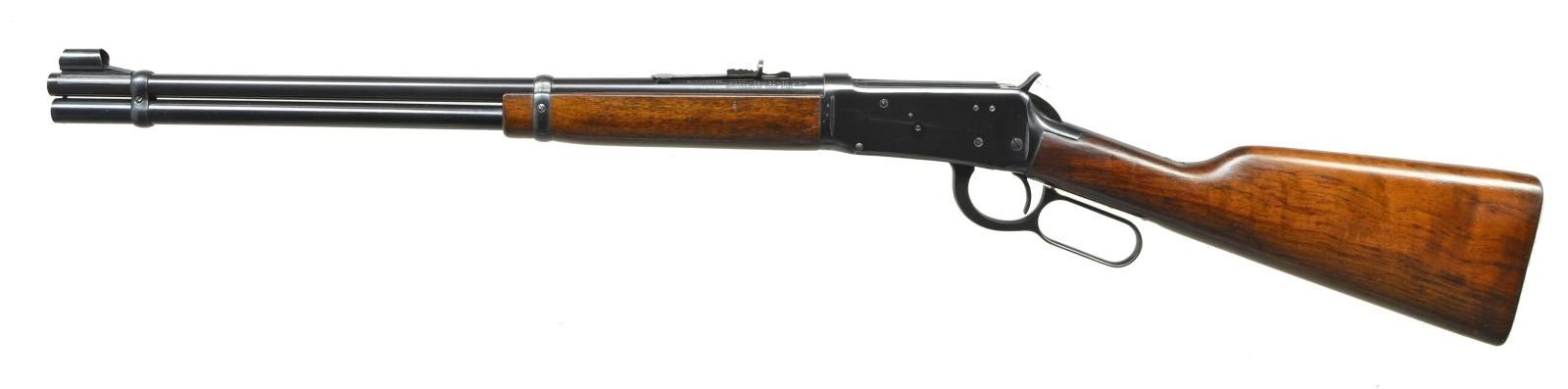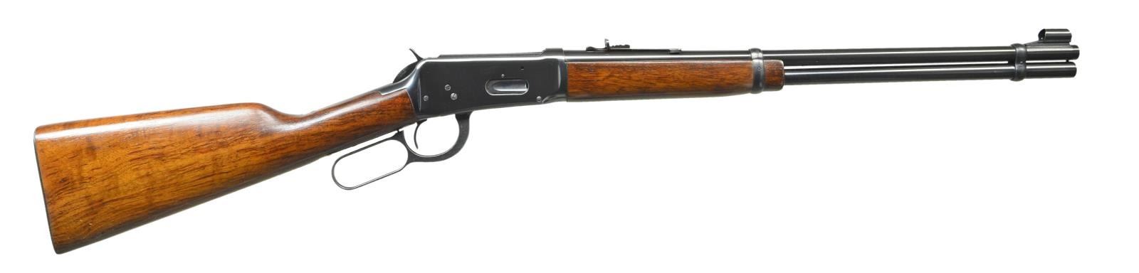 Cal. 30-30. S#. 2003945. bbl. 20" with hooded ramp bead front sight & sporting rear sight. Full length mag. Short wood walnut forend & straight grip stock with checkered steel buttplate. Mfg. 1954. CONDITION: Over 97% original blue showing some edge wear on action. Wood has very good original finish showing a few scratches . Bright near excellent bore. (22-5183/DS). CURIO. $500-700.