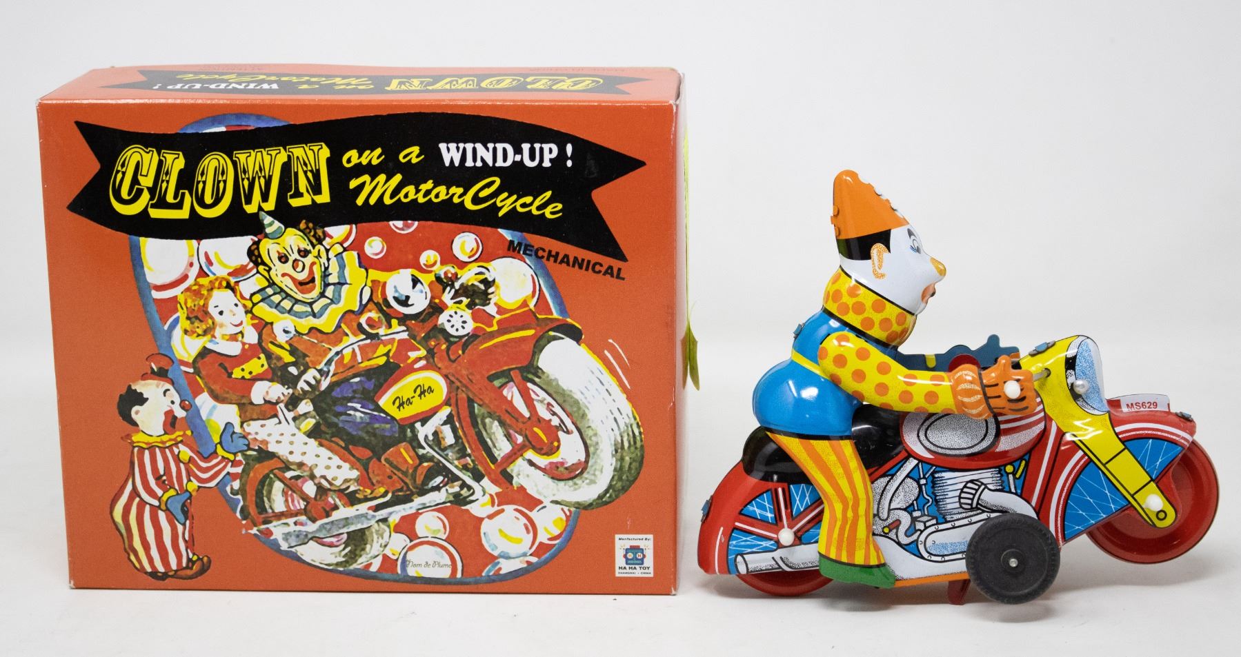 WIND UP CLOWN ON MOTORCYCLE IN BOX