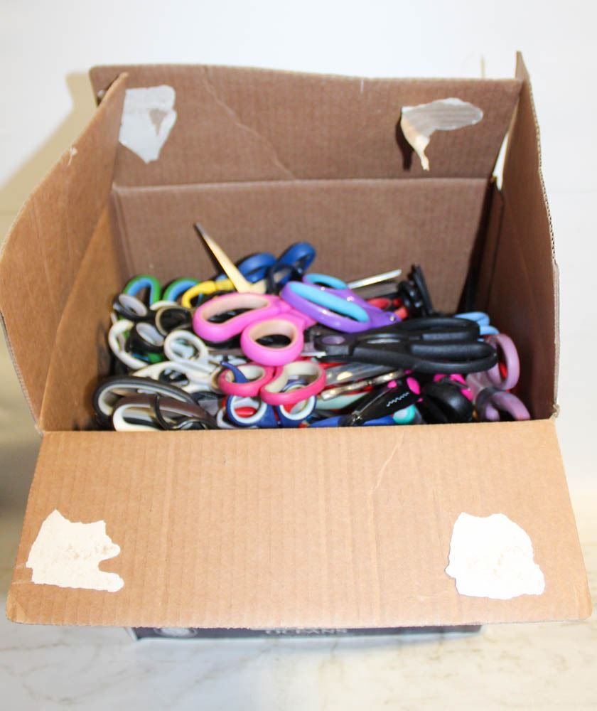 WINE BOX FULL OF SCISSORS
