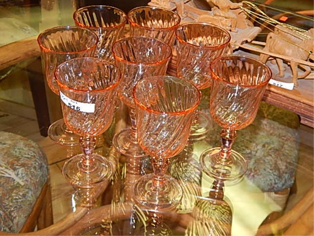 WINE GLASSES - PINK GLASS - 8 TOTAL