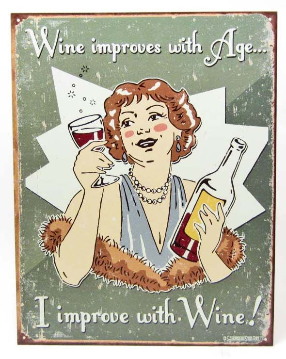 WINE IMPROVES WITH AGE FUNNY METAL SIGN