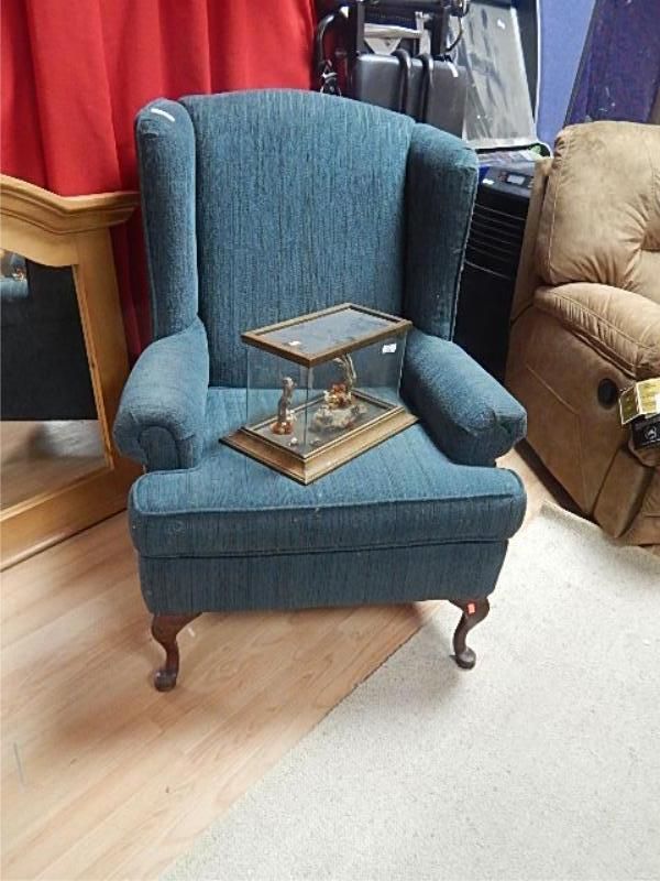 WING BACK CHAIR - GREEN WITH QUEEN ANN LEGS