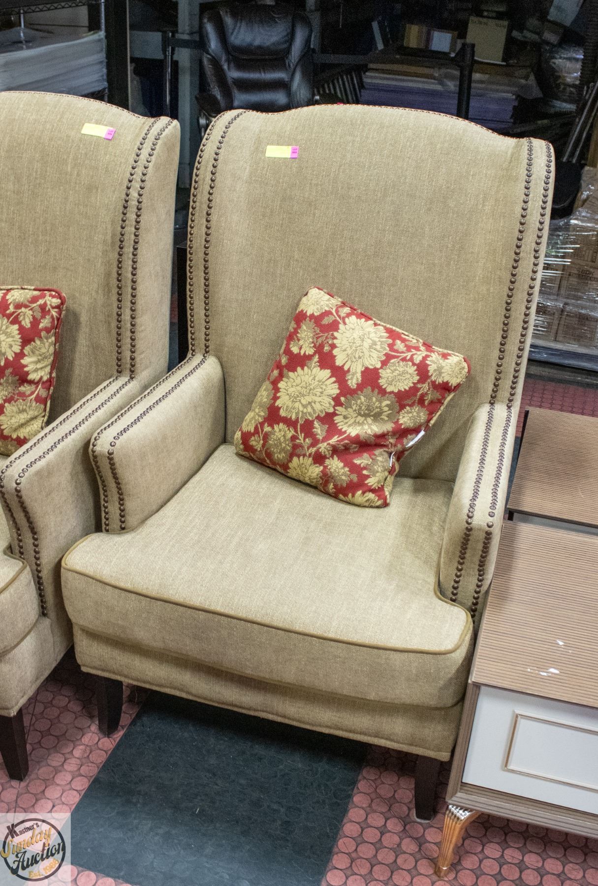 WING BACK CHAIR UPHOLSTERED W TACK DETAILS