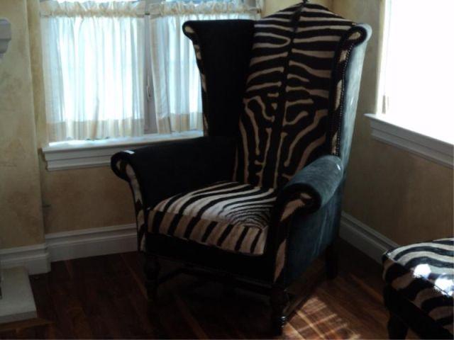 WINGBACK CHAIR, LEATHER & ZEBRA HIDE UPHOLSTERED {print sequence:} 61