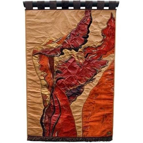 Unique Art Tapestry in Leather & Silk by Hermina Csata -- certain to become a valued art collector's treasure!</em></td>
