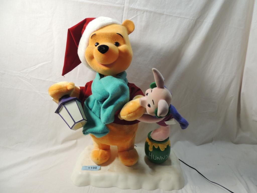 24" TALL WINNIE THE POOH AND PIGLET CHRISTMAS MOVEABLE STATUE. PLUG IN ELECTRIC MOVEABLE. AS SHOWN SEE PHTOO FOR MORE DETAILS.