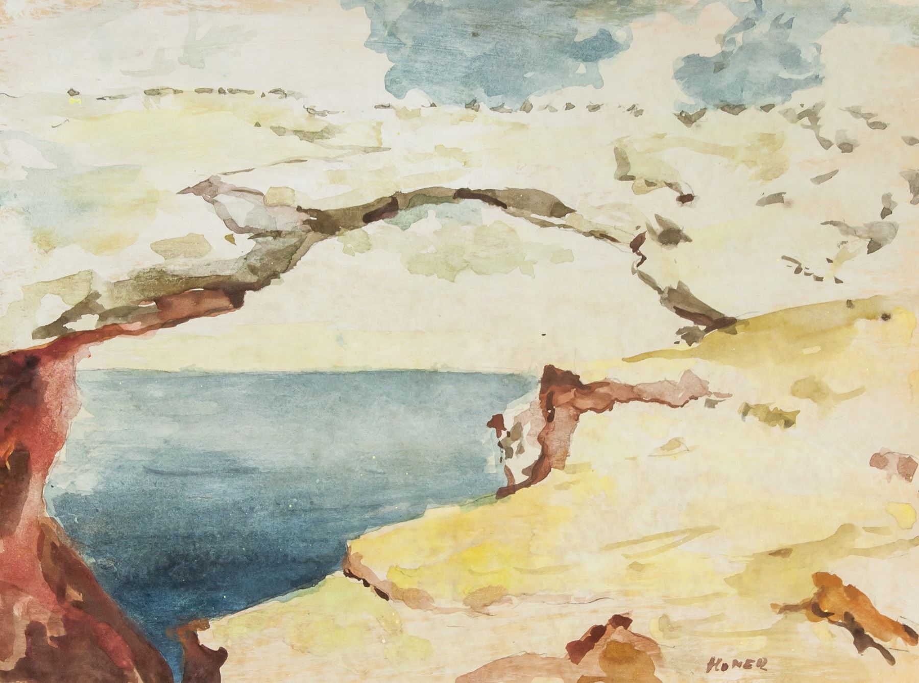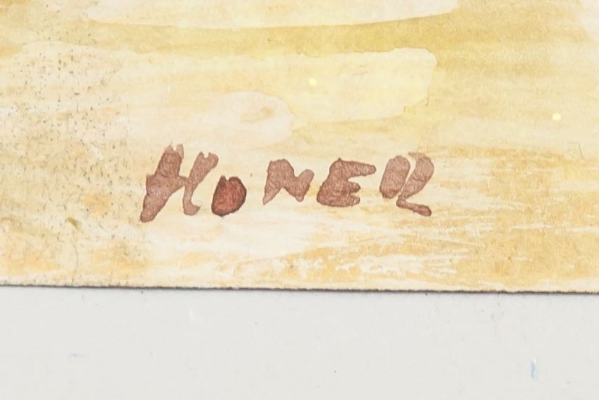 Watercolor and tempera on paper. Signed and attr. Winslow Homer (American, 1836-1910. 11 x 8.3 in. (28 x 21 cm). Winslow Homer is one of the best known painters of American scenes of outdoor life. After an apprenticeship in lithography, Homer began his career as an illustrator for Harper's, drawing scenes of the Civil War battlefront. After the war, he traveled to Europe and then spent the summer of 1873 in Gloucester, Massachusetts, where he began to work in watercolor—what would eventually became his primary medium. Homer's outdoor genre scenes painted a varied picture of Americana, from scenes of wilderness guides, to rural African American life in the post-Civil War era, to children at play. In 1881, he spent almost two years on the English coast depicting simple scenes of the local communities. As his career evolved, Homer turned more and more to the sea, and a move to a secluded spot in coastal Maine prompted the eternal struggle between man and nature to become a prominent theme in his work. PROVENANCE: Private collection (Chicago, IL)