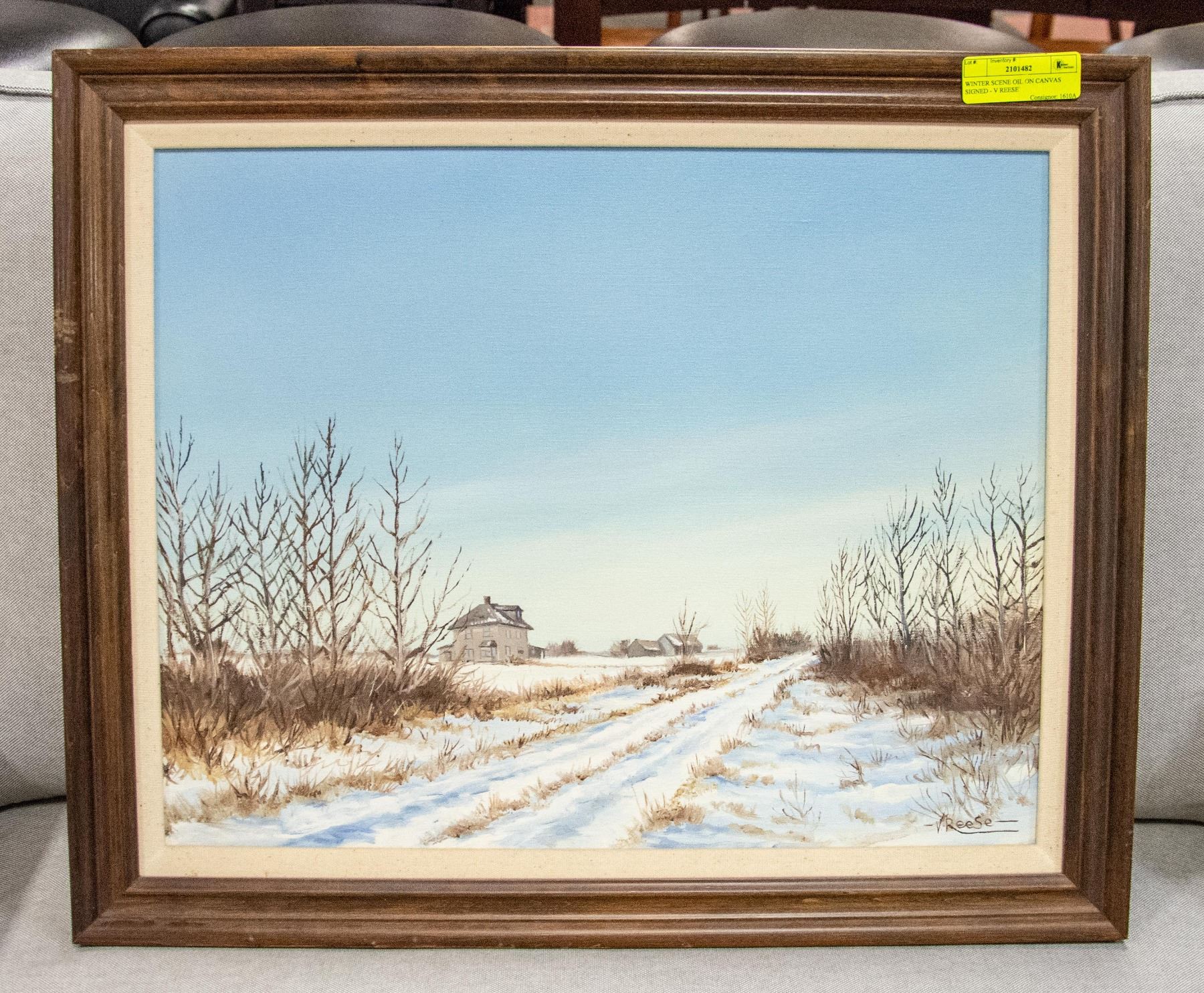 WINTER SCENE OIL ON CANVAS SIGNED - V REESE