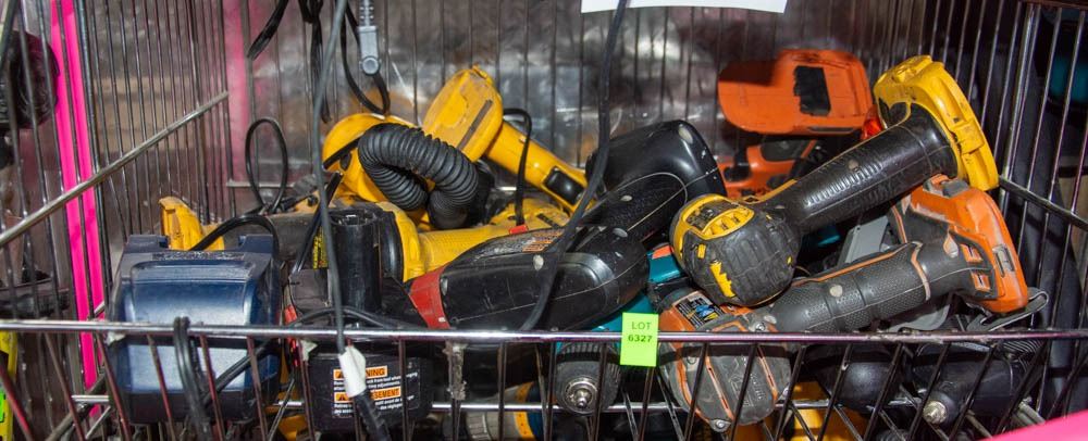 WIRE BIN FULL OF MISC DRILLS/ TOOLS/ ETC