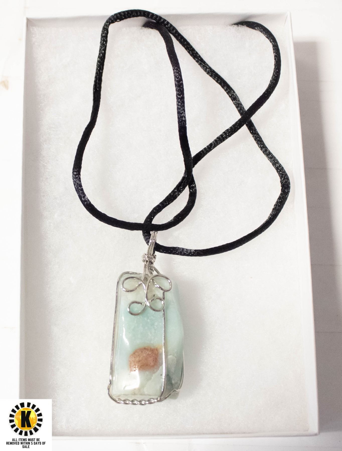 WIRE WRAPPED AMAZONITE NECKLACE 27"