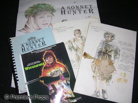 Witchfire (1986) - Originally titled A Sonnet for the Hunter, included are five items from writer James Orr. An original bound script, original signed poster with original title, a sales sheet poster for Witchfire and two character sketches for Lydia, played by Shelley Winters, and Julie, played by Corinne Chateau. The sketches are drawn by Barb Taylor (designer for Muppets & Broadway’s Phantom of the Opera). (17.5 x 22.5). Sales sheet (8x10). sketches (16x10).