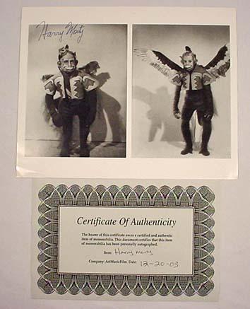 WIZARD OF OZ FLYING MONKEY AUTOGRAPHED 10 BY 8 PHOTO W/ COA - Harry Monty Autograph.