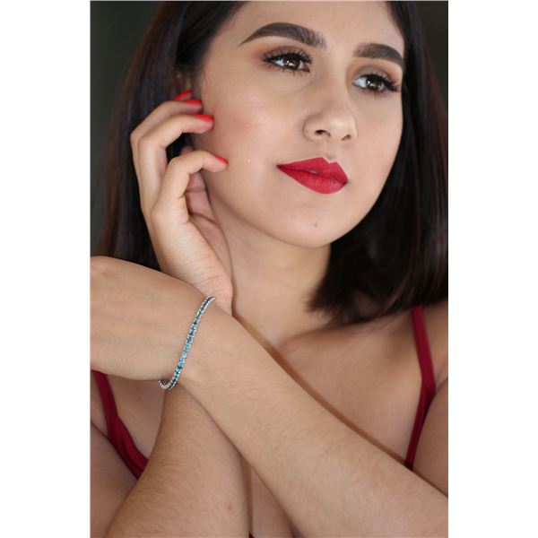 Natural 6.15 ctw Blue Diamond Eternity Tennis Bracelet 14K White Gold - REF-415H2M